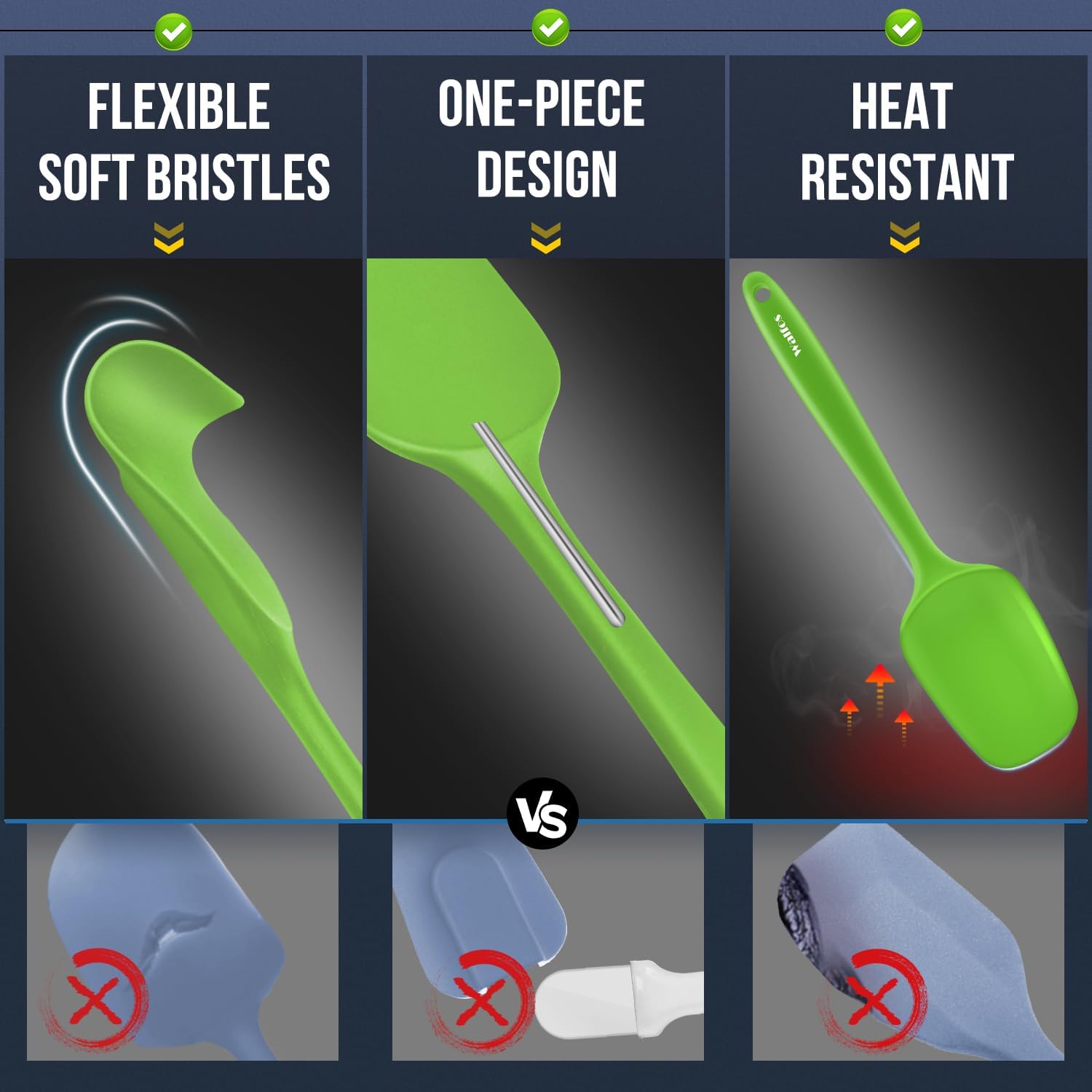 - An Internal Stainless Steel Core lechnology:The strong stainless steel won't break easy like cheap plastic spatula. WALFOS baking spatula can hold up to the demanding use of home cooks, continue to perform day after day