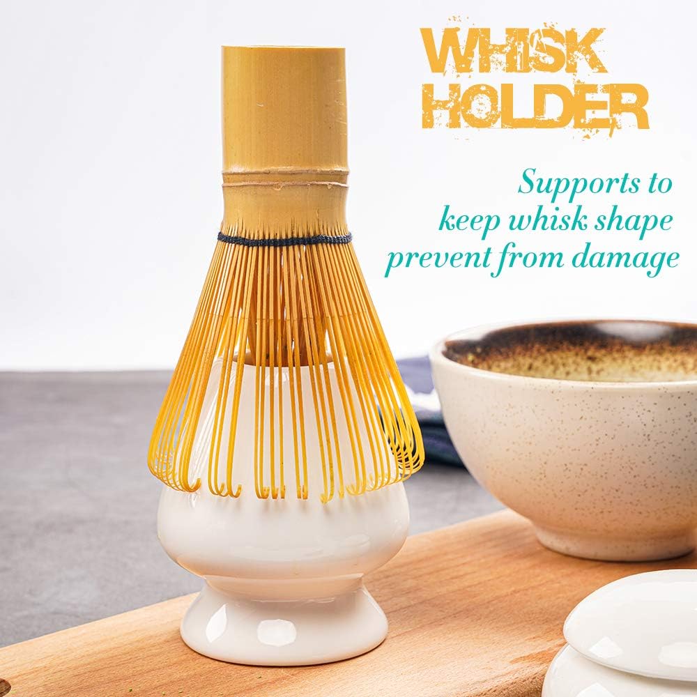 - MATCHA BOWL AND WHISK STAND AND MATCHA TEA CADDY: Matcha bowl (4.6 x 2.3 in) is made of high quality pottery clay, glaze craft makes it smoother and Japanese style design are the best choice for you. Whisk stand supports to keep the shape of the bamboo strings and dried it to prevent damage, as well. Matcha tea caddy is used to hold matcha tea powder, easy to carry and use.