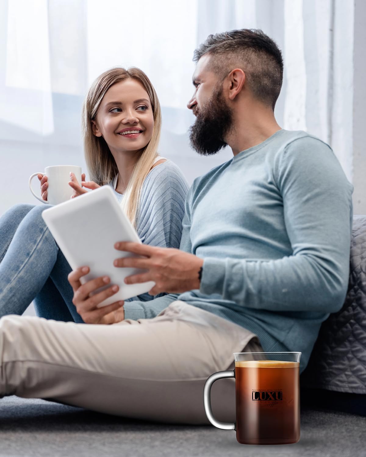 LUXU Borosilicate Glass Coffee Mugs (Set of 2)-15 oz,Clear Tea Cups,Lead-free Drinking Glasses with Handle,Perfect for Latte,Americano,Cappuccino,Tea Bags,Water,Milk and Hot and Cold Beverage