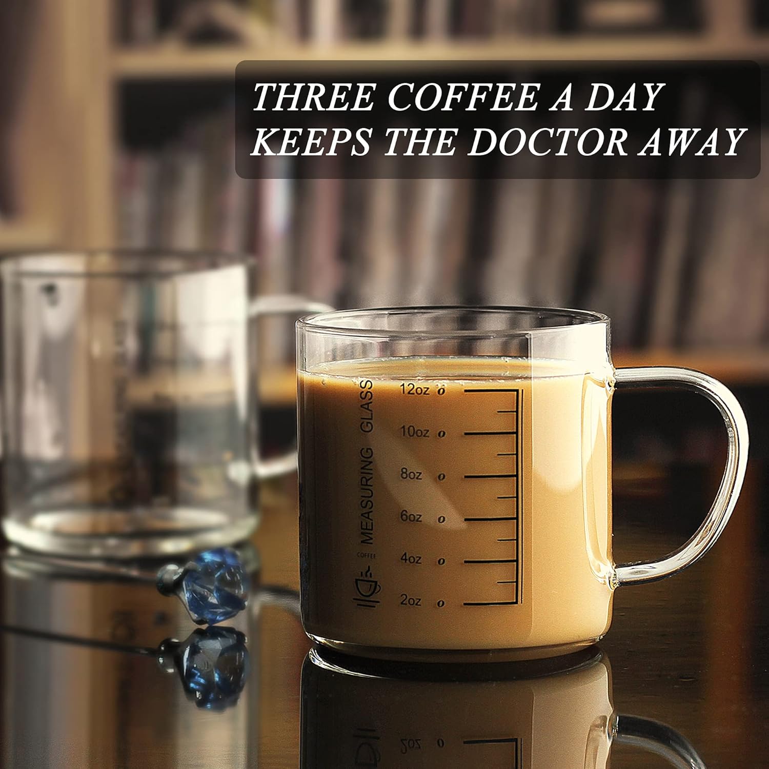 - IMPRESSIVE COFFEE MUGS:The simple and stylish coffee cup has a measuring function,which can help you better control the concentration of coffee,so as to better enjoy your Blue Mountain coffee or any other solid beverage.Interestingly,you can know how much water you drank today.These mugs are crystal clear,light weight and the perfect size.