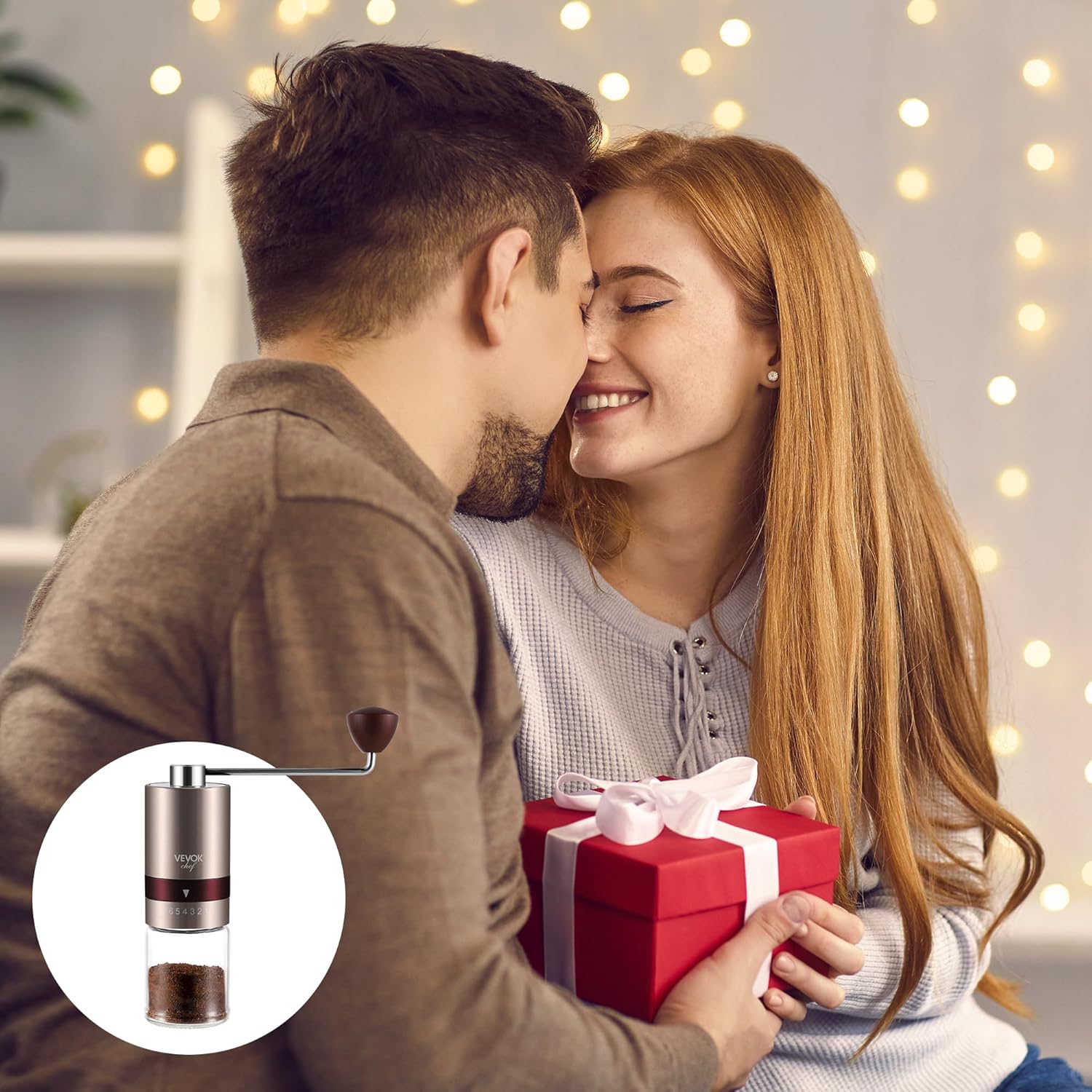 VEVOK CHEF Gold Manual Coffee Grinder Stainless Steel Burr Coffee Grinder with Portable Bag External Adjustable Setting Small Hand Coffee Grinder Ultra Fine for Espresso at Home Morning Coffee