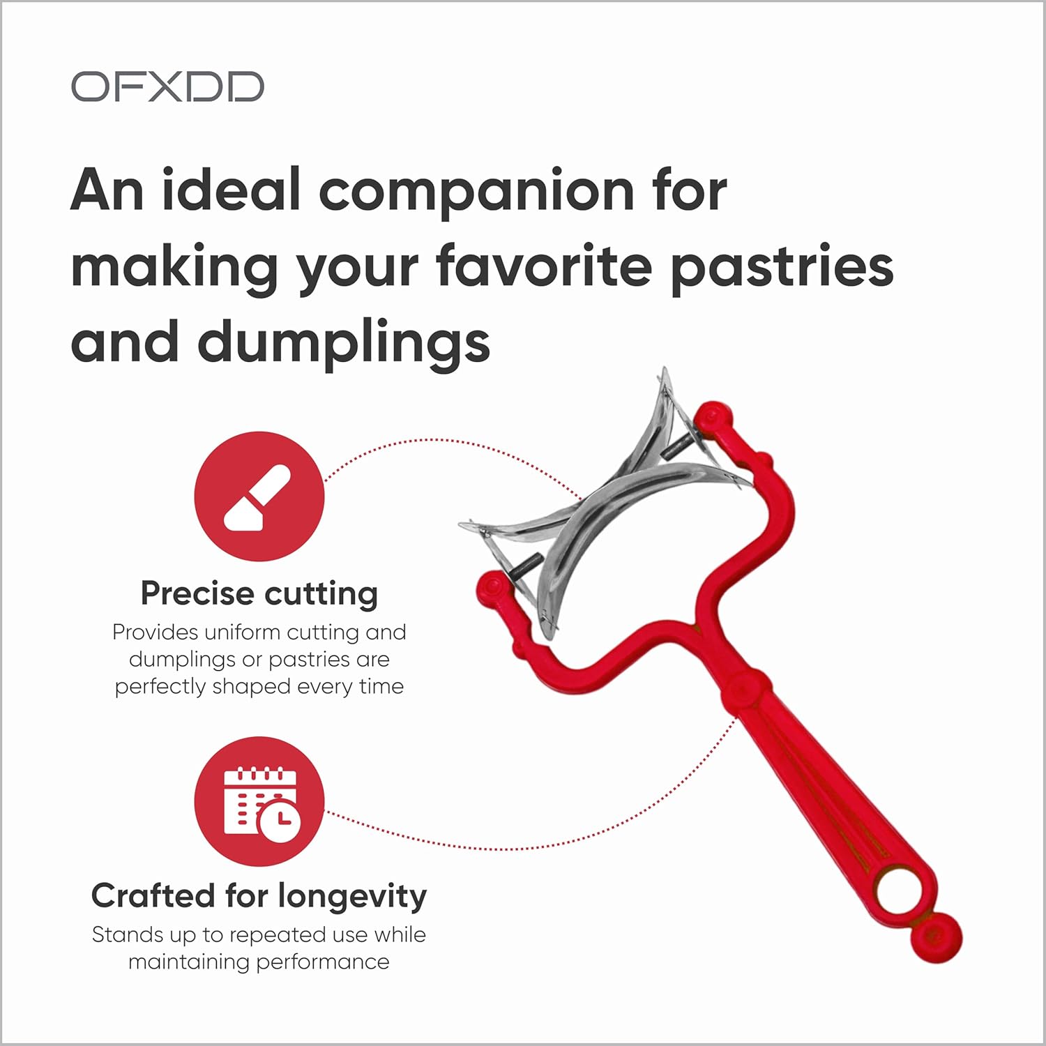 - The circle roller cutters baking is ideal tool for making calzone, dumpling, empanada, pie, ravioli, pierogi, breads, cookies, biscuits. The dough circle cutter roller features a long, comfortable handle that provides effortless grip and easy handling. This rolling circle cutters baking is a great assist in baking & pastry.