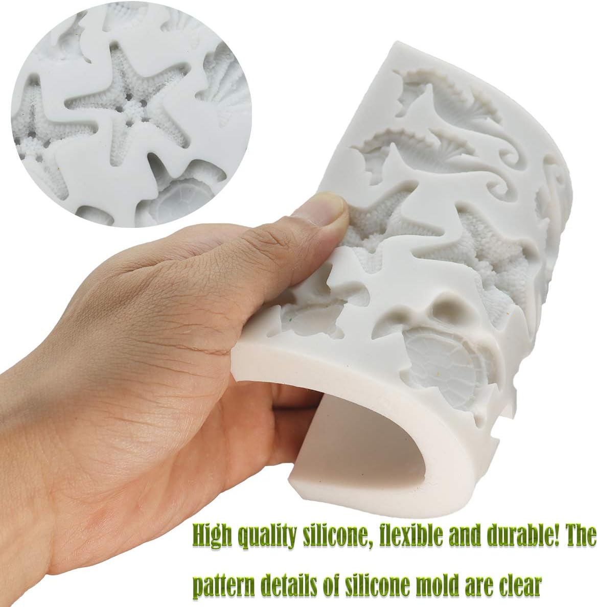 Sakolla Marine Theme Fondant Silicone Molds, Seashell, Conch, Seahorse, Starfish, Tortoise Silicone Mold for Cake Decoration, Chocolate Candy Sugar Craft