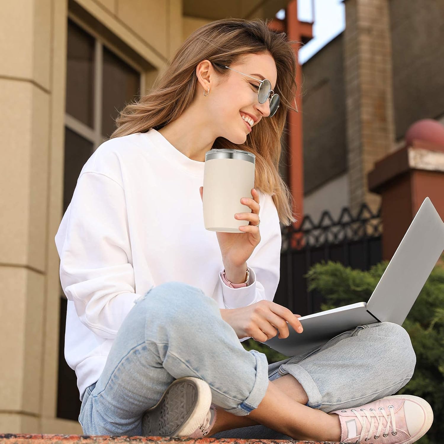 VEGOND Stainless Steel 12 oz Tumblers bulk Vacuum Insulated Double Wall Travel Tumbler with Lid and Straw Reusable Tumbler, Beige 1 Pack
