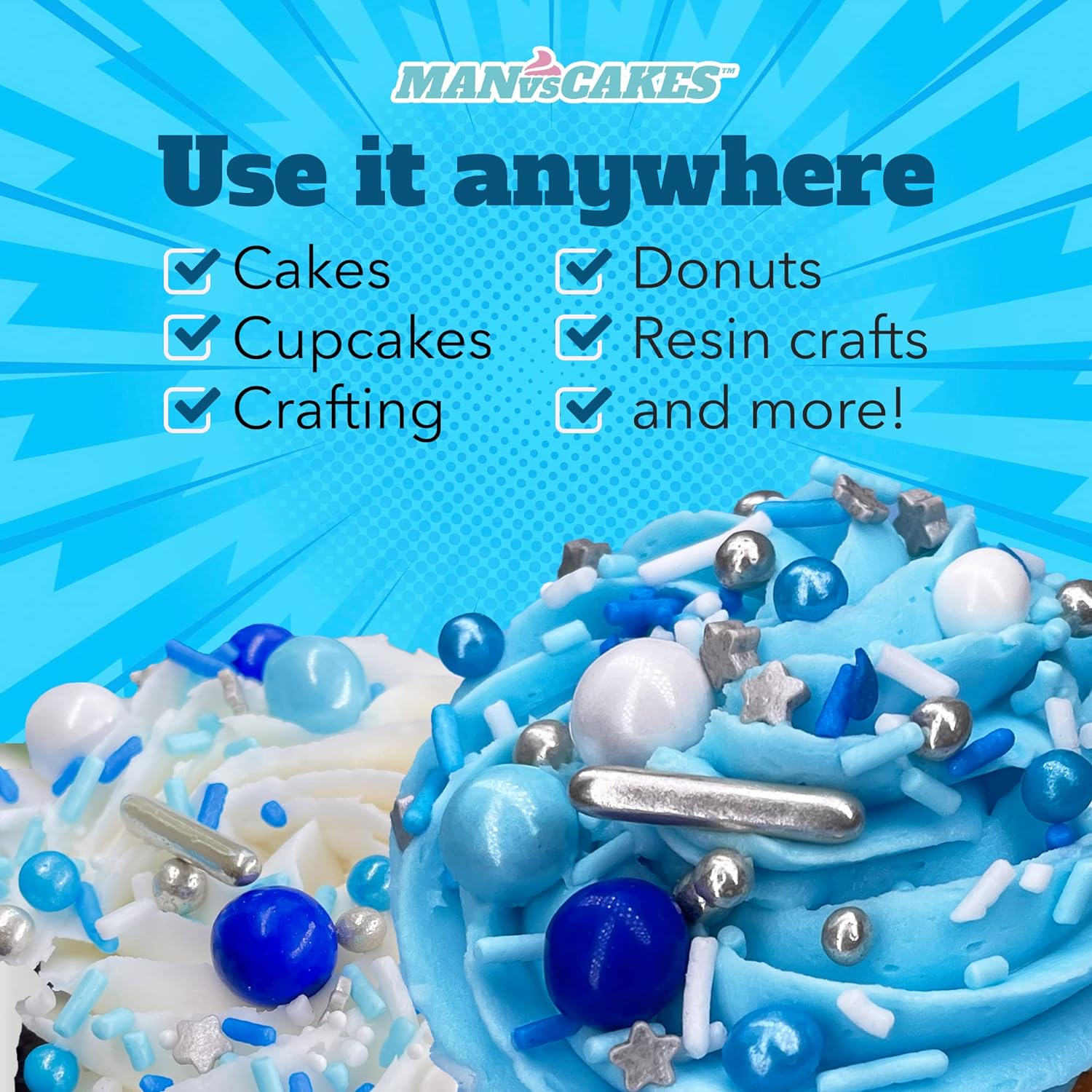 Manvscakes Sprinkles- Edible Cake and Cupcake Sprinkles with Assorted Shapes and Sizes for Parties, Metallic Sprinkle Mix for Cookies, Ice Cream, Cake and Cupcake Decorating, 4 oz, Blue sprinkles