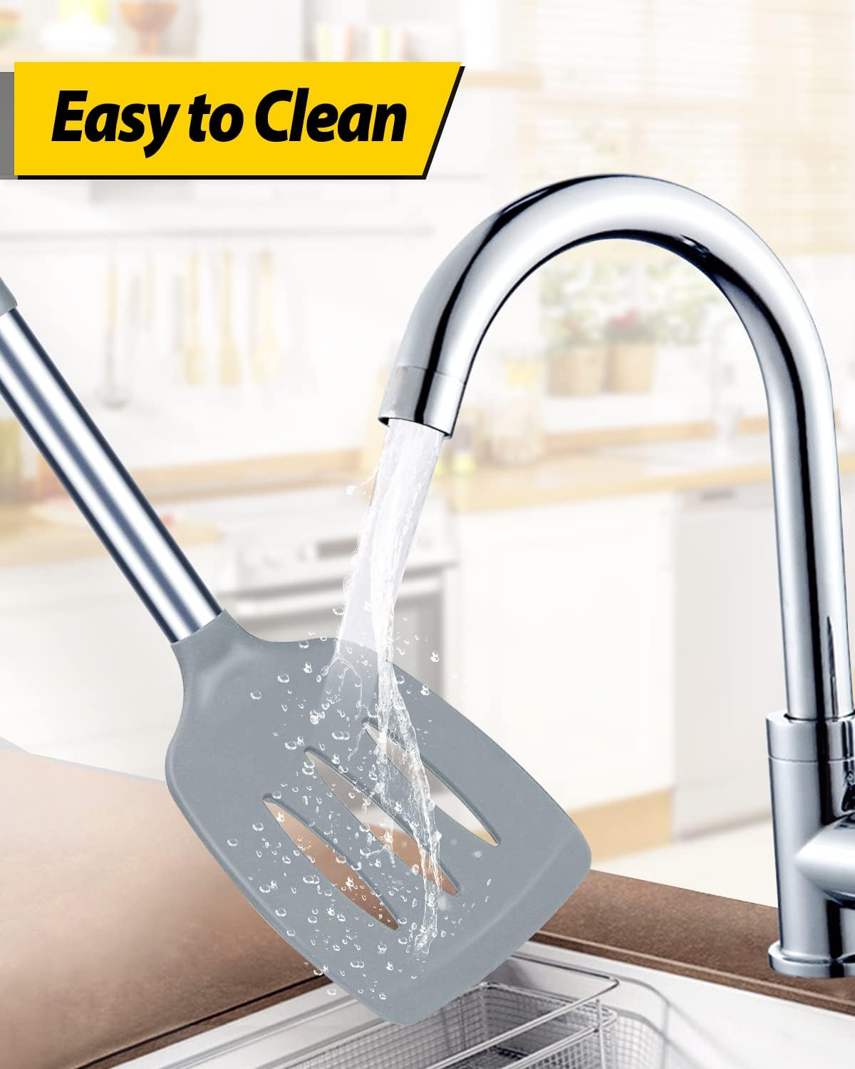 - Thoughtful Design : The good-quality 18/8 stainless steel keeps you away from the trouble of kitchen utensils rusting or breaking; This anti-scald silicone handle is not easy to conduct heat and is more comfortable to hold than traditional utensils