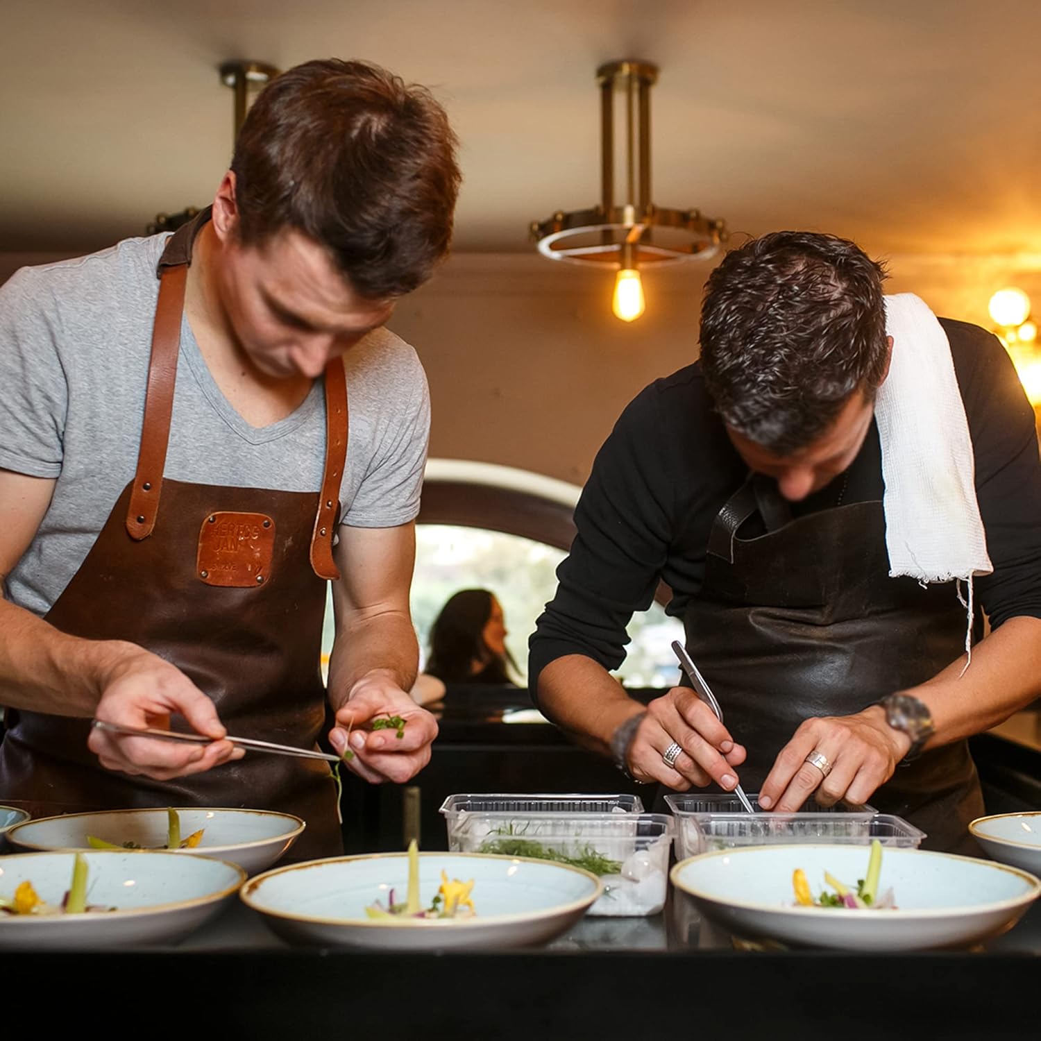 - 【7 Pack Chef Plating Tools】This high quality plating tools culinary professional set,1 tool bag(the dimensions of the bag are 28.5 x 27 cm) , 7 stainless steel kitchen culinary utensils: 1 spoon with spout for sauces and plating, 1 large perforated spoon, 1 spreader spatula, 3 kitchen tongs for plating and 1 to clean the fish.