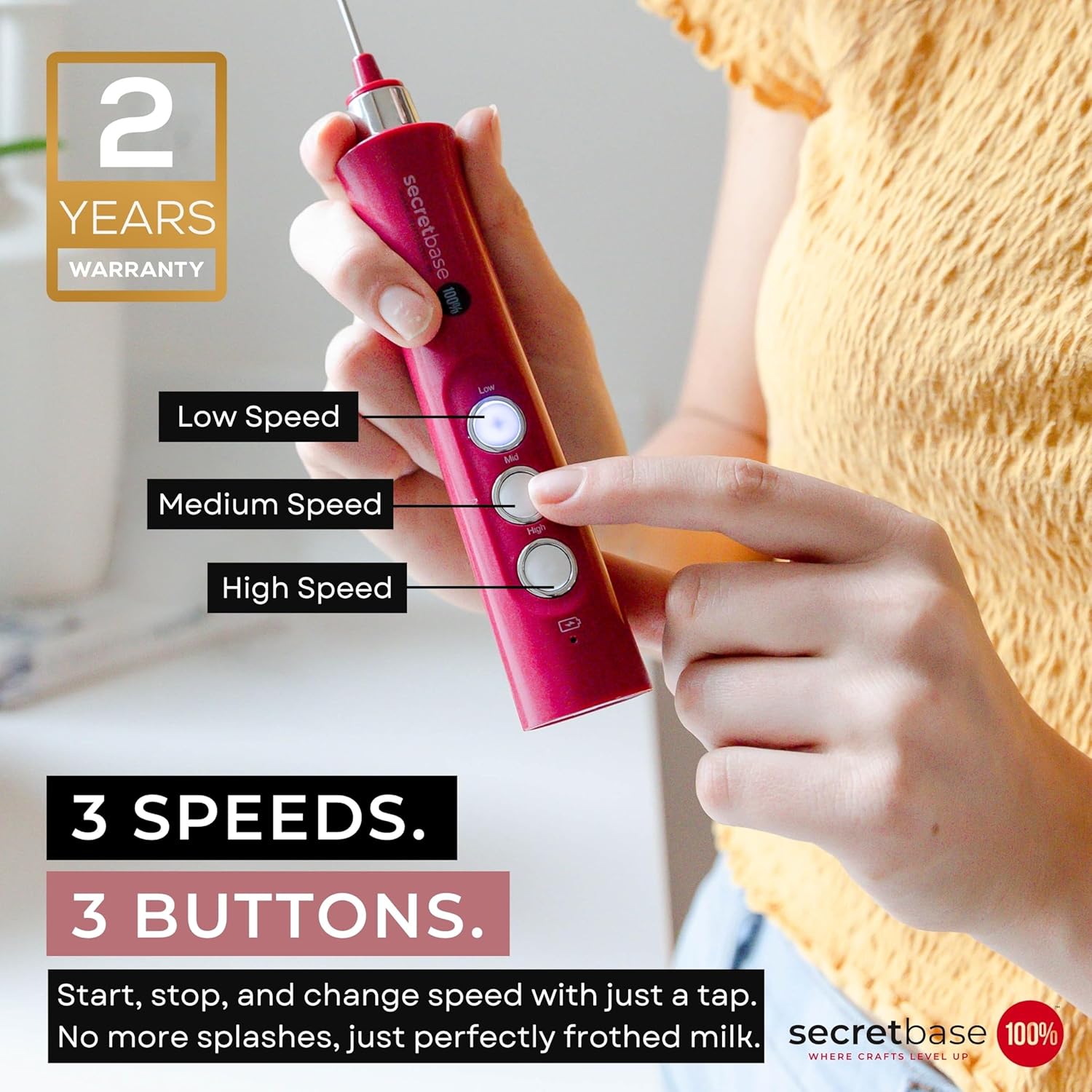 Secretbase Rechargeable Milk Frother Mixer, Pitcher and Charging Base - 3 Speed Handheld Foam Maker for Barista Style Coffee, Bulletproof Coffee, Keto Coffee and Matcha Latte