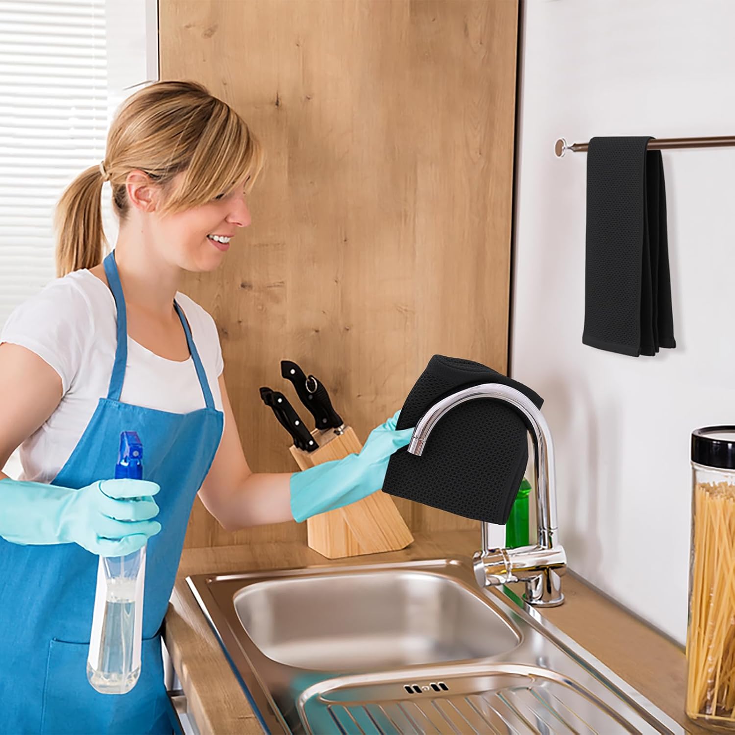 Kitinjoy 100% Cotton Waffle Weave Kitchen Towels, 4-Pack Super Soft and Absorbent Dish Towels for Drying Dishes, Kitchen Hand Towels, 13 in x 28 in, Black