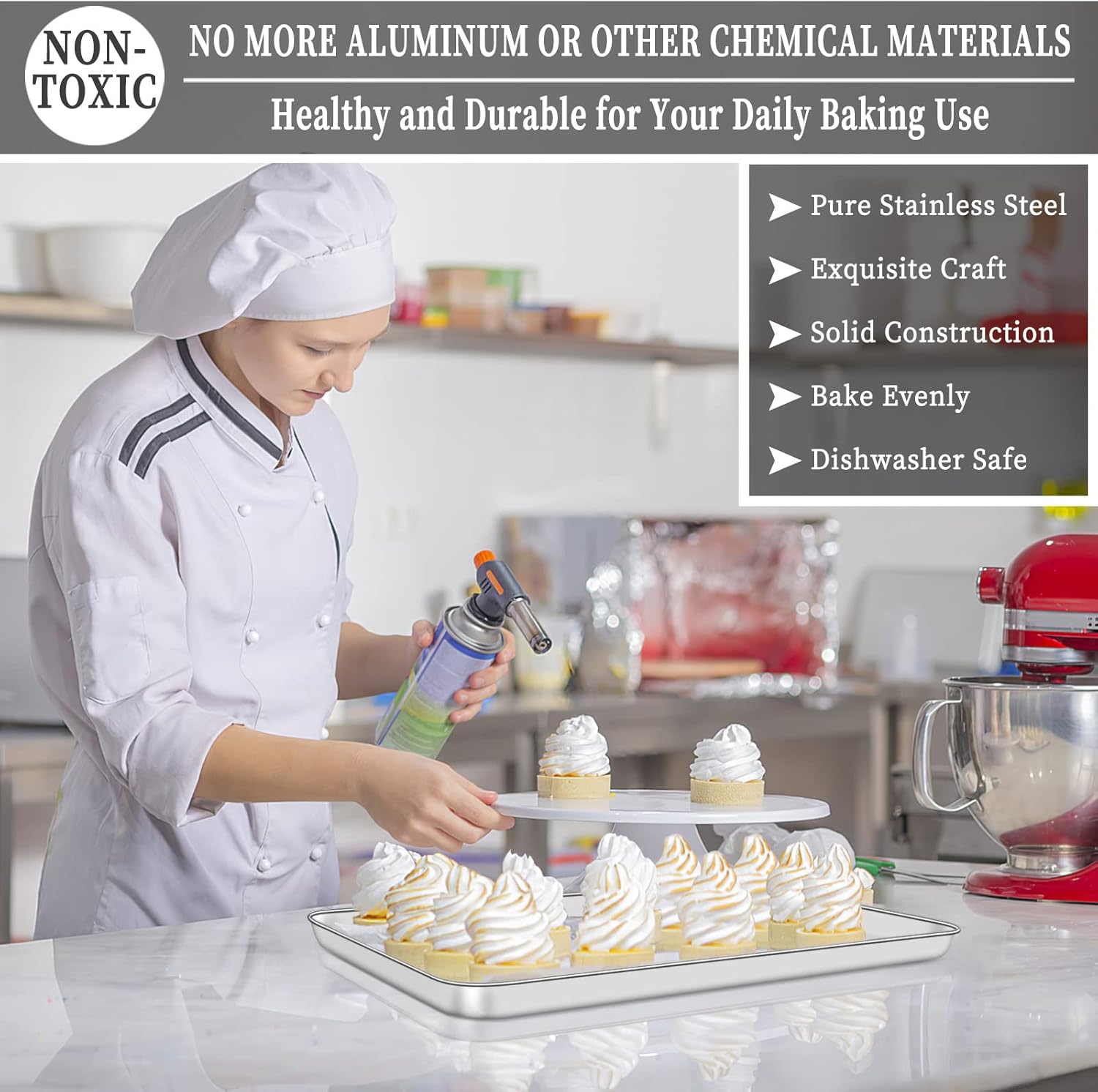 - 🥗 [ENJOY HEALTHY BAKING] Deedro baking sheets and baking racks are constructed with pure stainless steel without any toxic substance or chemical coating, PTFE, PFOA, BPA and rust free. You needn't worry about coating flaking off or noxious material leaching into your food, great substitution of aluminum pan, healthy and safe for daily use.