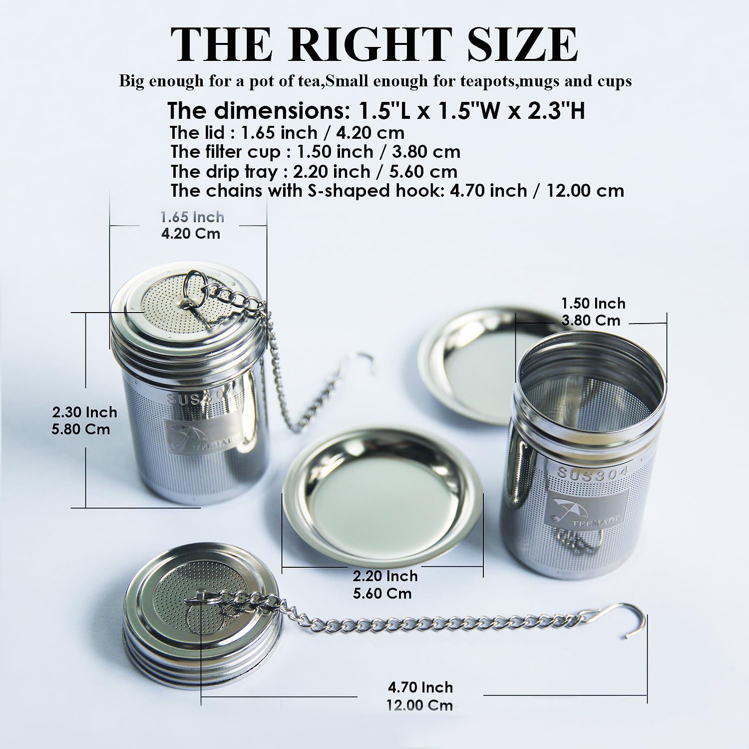 - ✅Extended 4.5" chains. Fit nearly all the teapots, mugs or cups of different size.