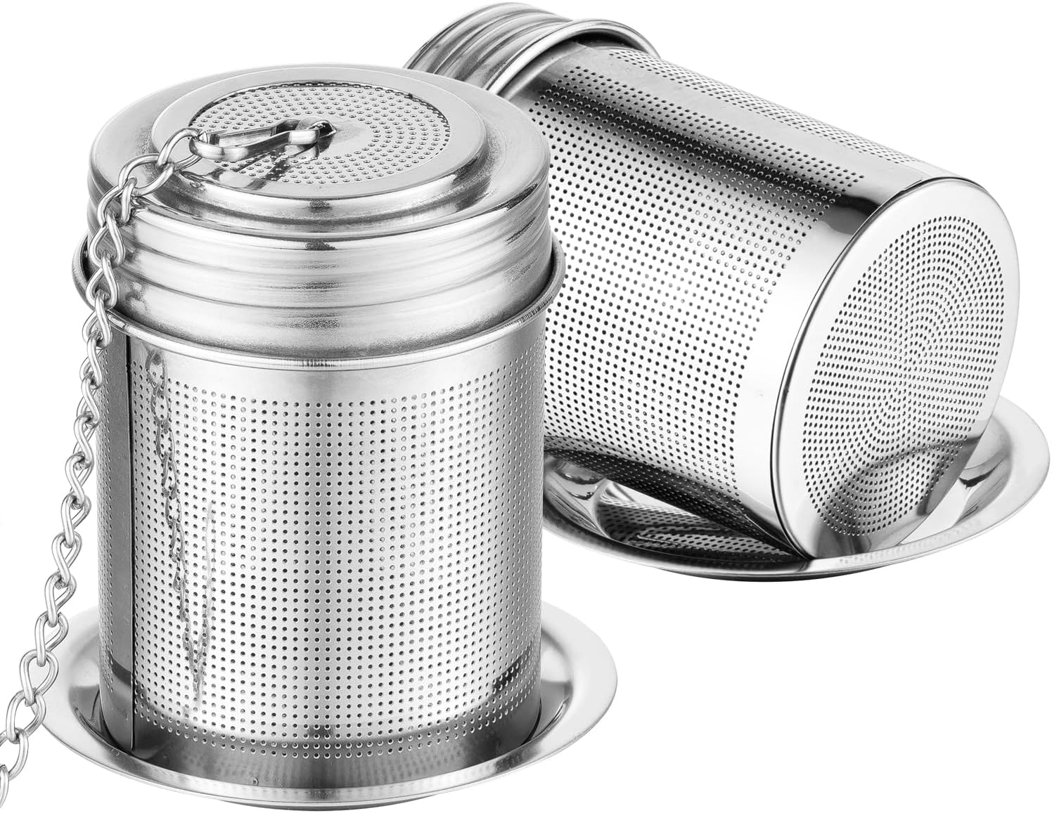 - ✅Better performance,Reasonable price! 2 Packs,Each pack includes 1 screw lid, 1 extra fine mesh cup, 1 saucer for avoiding making a mess when taking out. All the parts are made of 18/8 stainless steel. Odor & Chemical Free. Easy to clean and dishwasher safe.