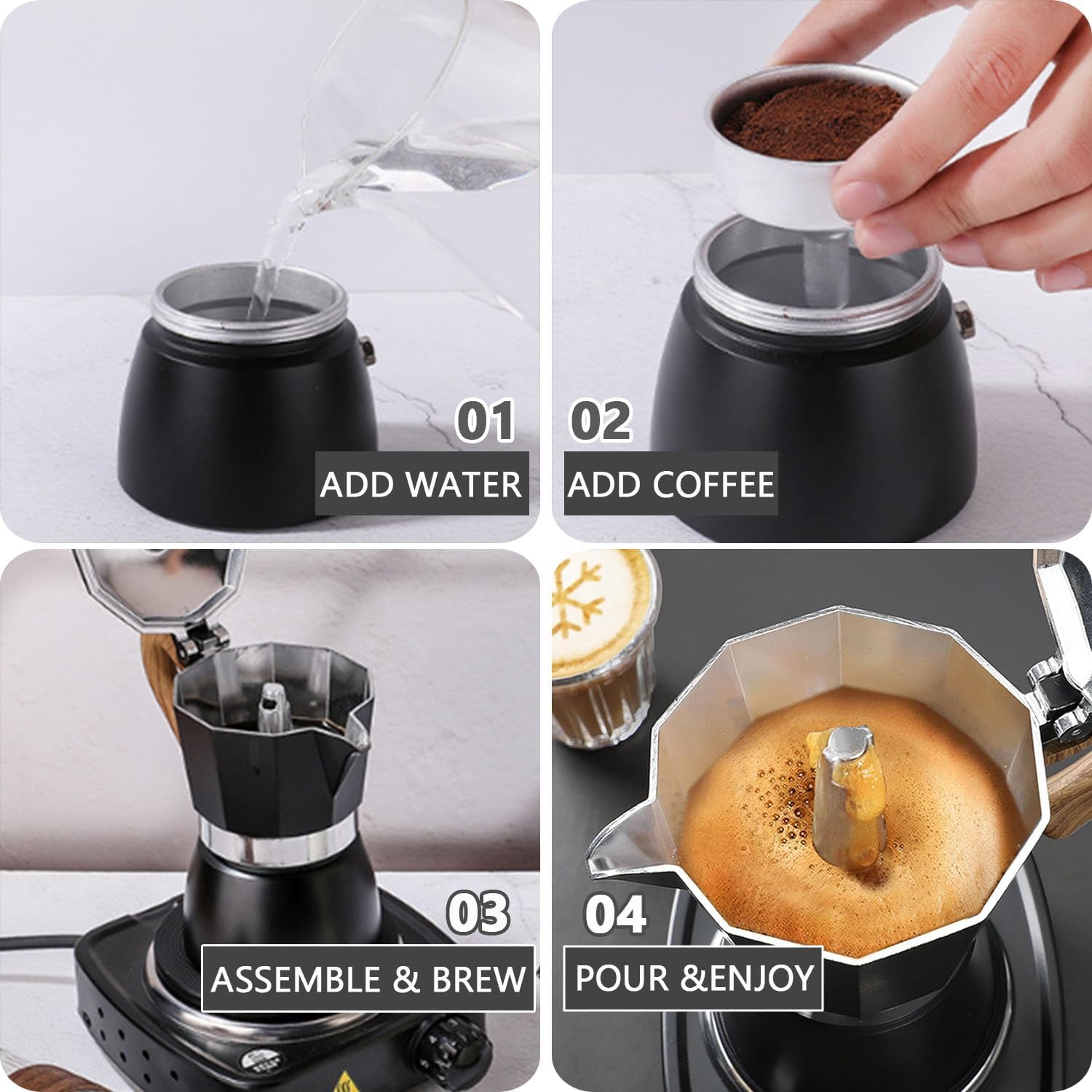 - ใ๐ฆ๐ฎ๐ณ๐ฒ & ๐๐ฎ๐๐๐น๐ฒ ๐๐ฟ๐ฒ๐ฒใ Our aluminum espresso maker made with durable aluminum that keeps coffee warm. With Cool Touch Handle and and safety valve to release excess steam for easy handling