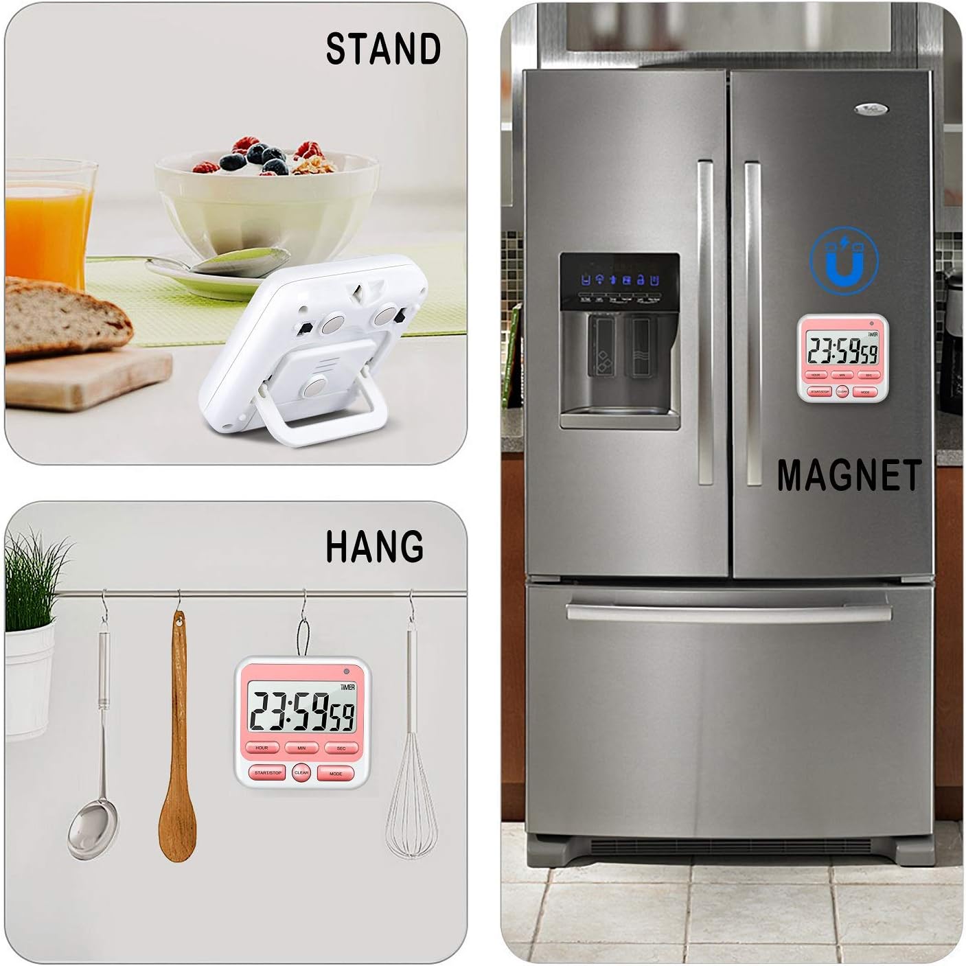 KTKUDY Digital Kitchen Timer with Mute/Loud Alarm Switch ON/Off Switch, 24 Hour Clock & Alarm, Memory Function Count Up & Count Down for Kids Teachers Cooking, Large LCD Display, Strong Magnet (Pink)