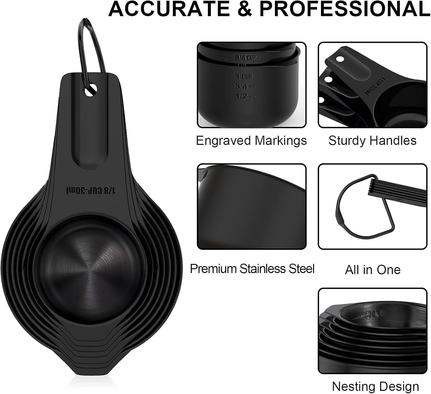 21 Pcs Stainless Steel Measuring Cups and Spoons Set, Wildone Stackable Metal Measuring Cups and Spoons for Cooking & Baking, Includes 7 Cups, 9 Spoons and 5 Mini Spoons(Black)