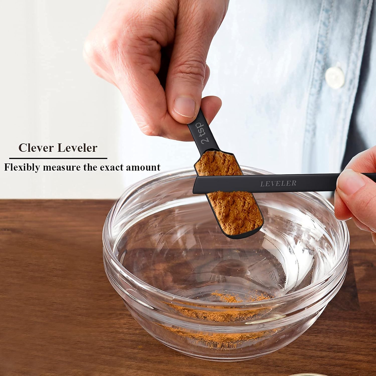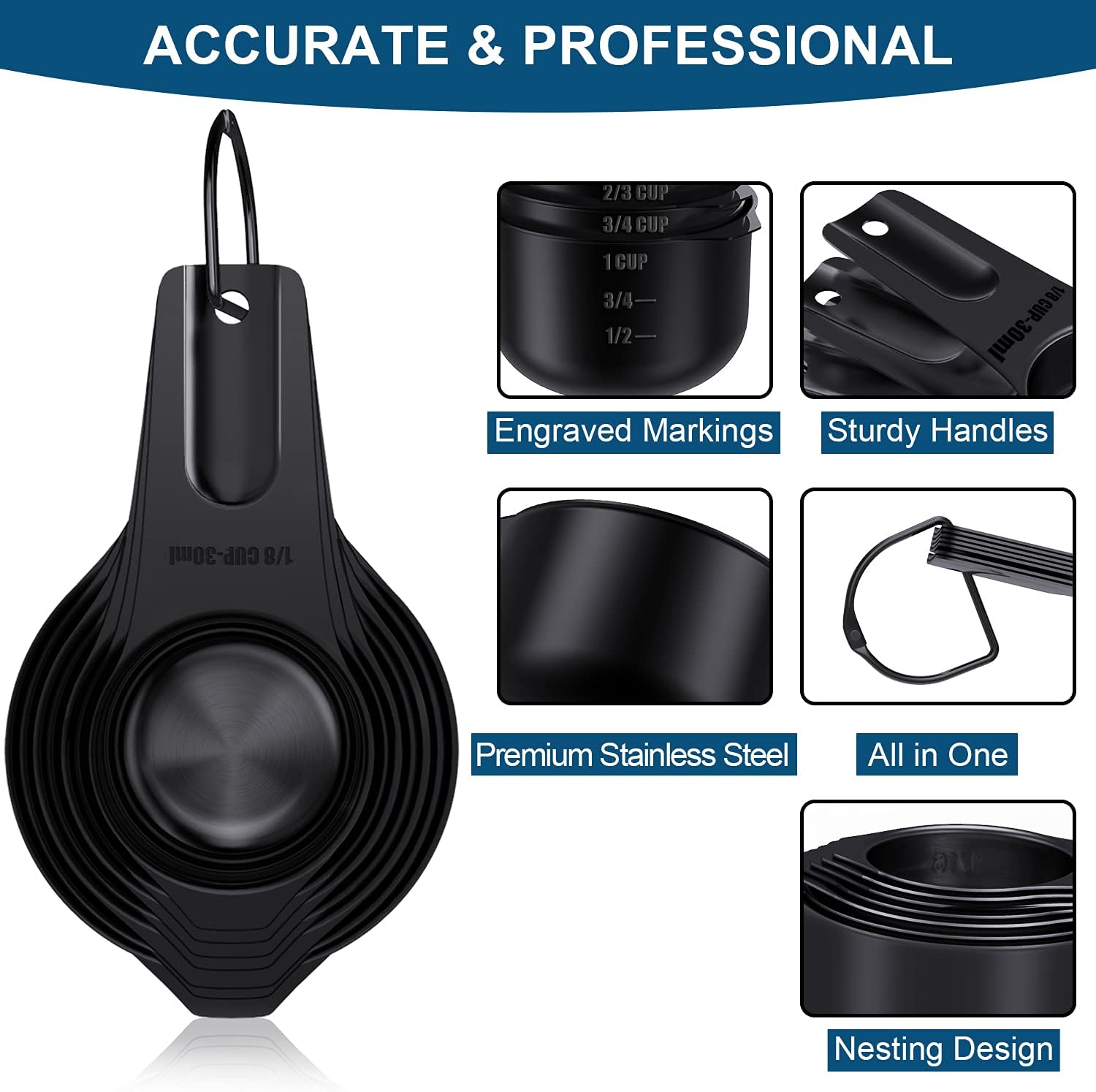 Wildone Black Measuring Cups & Spoons Set of 21 - Includes 7 Stainless Steel Nesting Measuring Cups, 8 Measuring Spoons, 1 Leveler & 5 Mini Measuring Spoons, Ideal for Dry & Liquid Ingredients