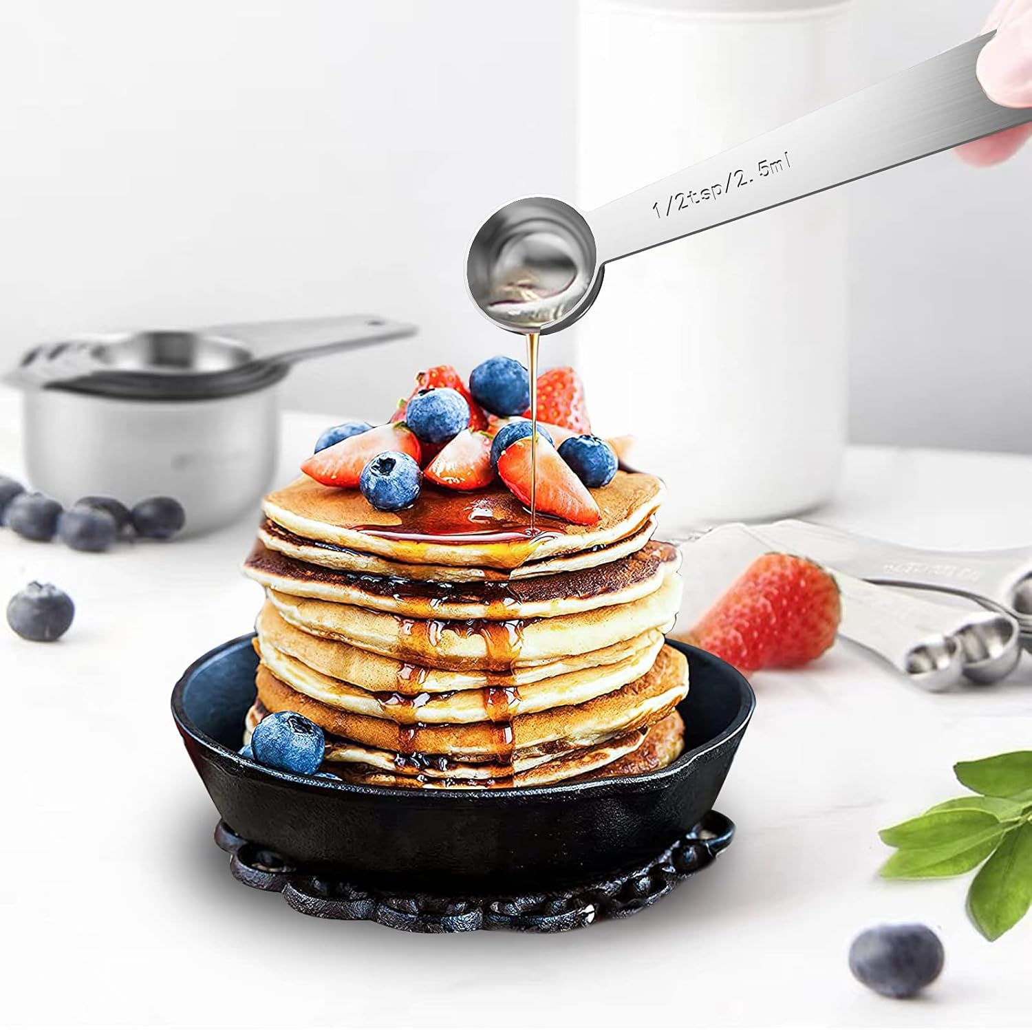- NO MORE GUESSWORK: Each cup and spoon have engraved U.S. and metric measurement markings, which are easy to read and never fade. No more guess in kitchen!