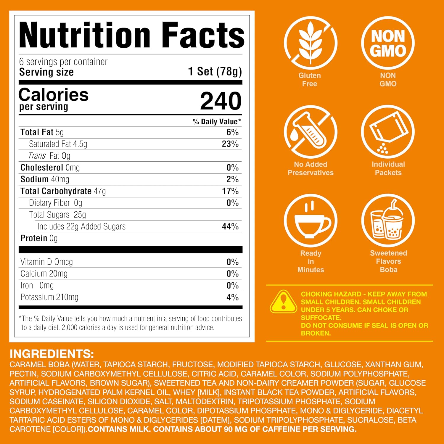 - WHAT IS INSIDE – 6 Individually wrapped portions of caramel flavored boba, 6 crème brulee milk tea packets, & 6 extra wide paper straws. Store in a cool, dry place (no refrigeration necessary).