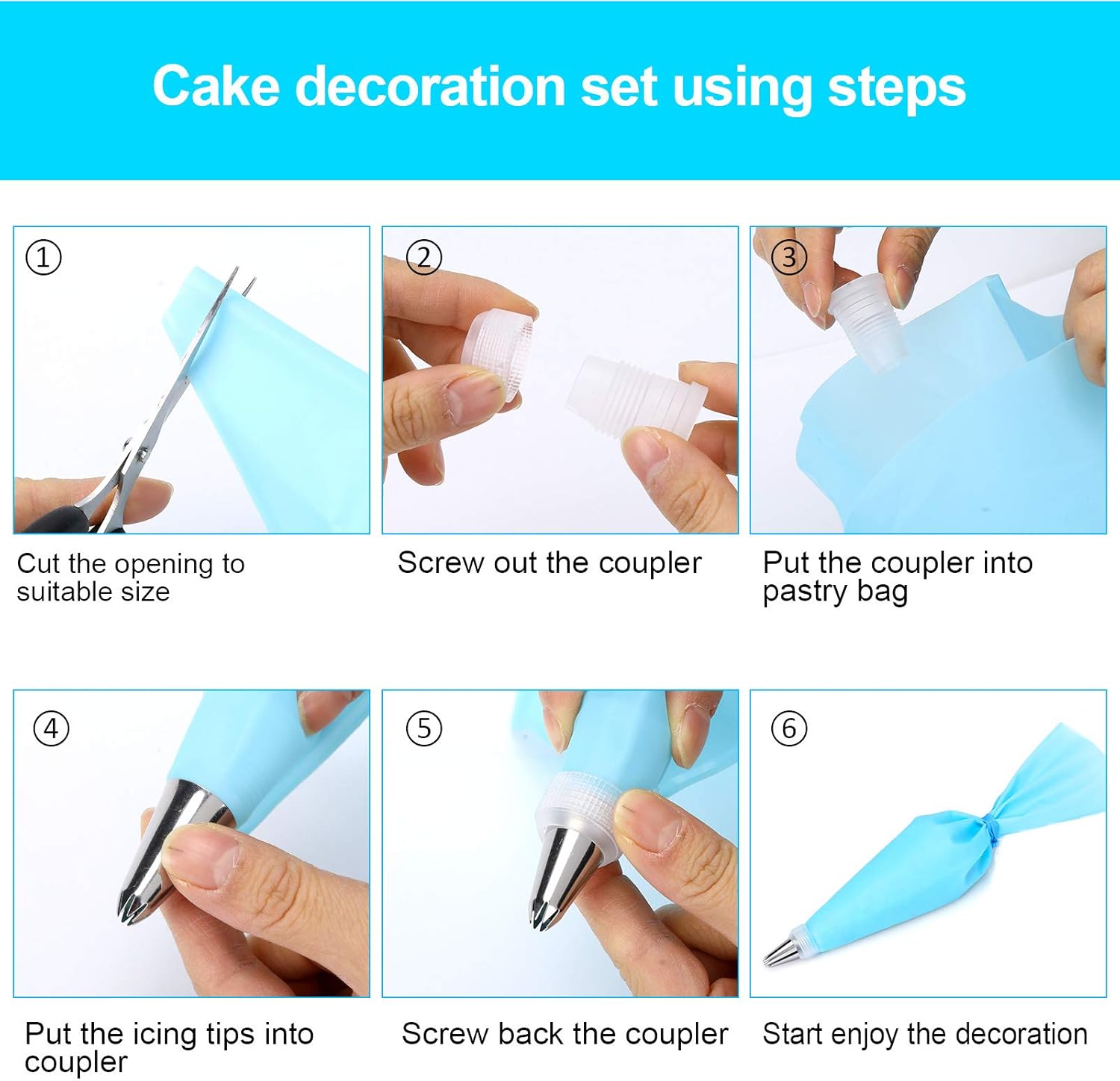 - 🍰【WIDE APPLICATION 】: This Frosting Piping Kit can widely used for cakes, pies, cookies and other cake decorating. They are good helpers for family, party, anniversary.
