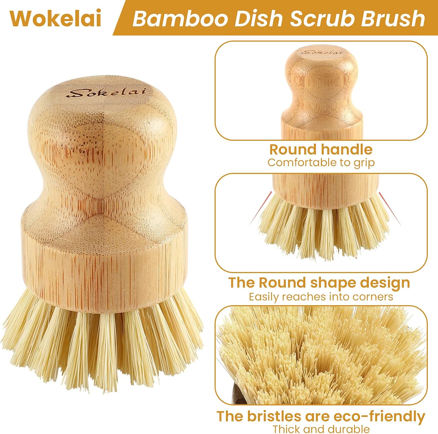 - 【Mini Round Reachable Design & Heat-Resistant Bristle】Brushes handles are designed to fit your palm providing a comfortable grip, which makes scrubbing easier and more powerful. Plant-based sisal bristles dry quicker than plastic bristles naturally, which makes them non-sticky. They are safe to use in boiling water and are not easily deformed.
