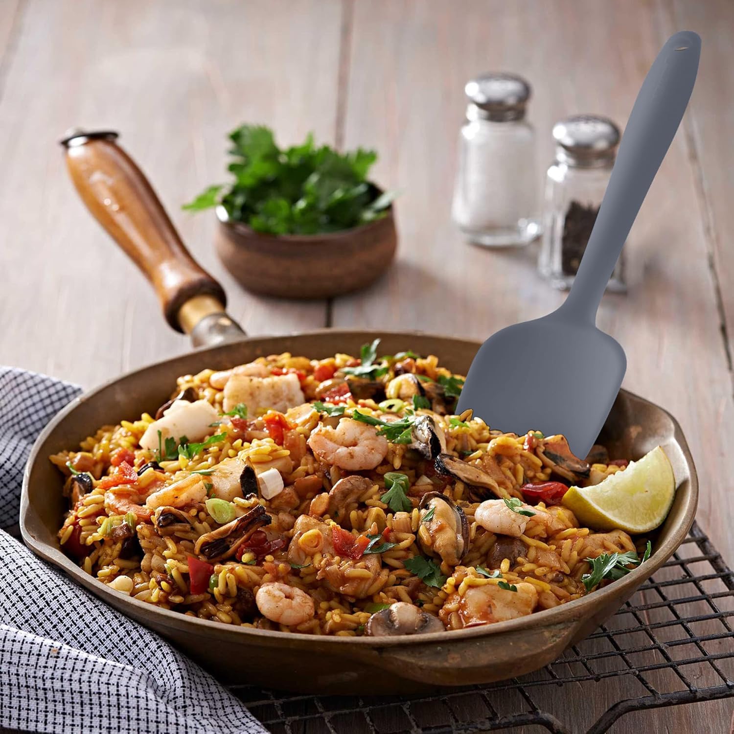 Silicone Spatulas Set Turners Tongs Cooking Utensils Set High Heat Resistant Kitchen Scraper Spatulas for Cooking Mixing Baking BPA Free Dishwasher Safe, Grey