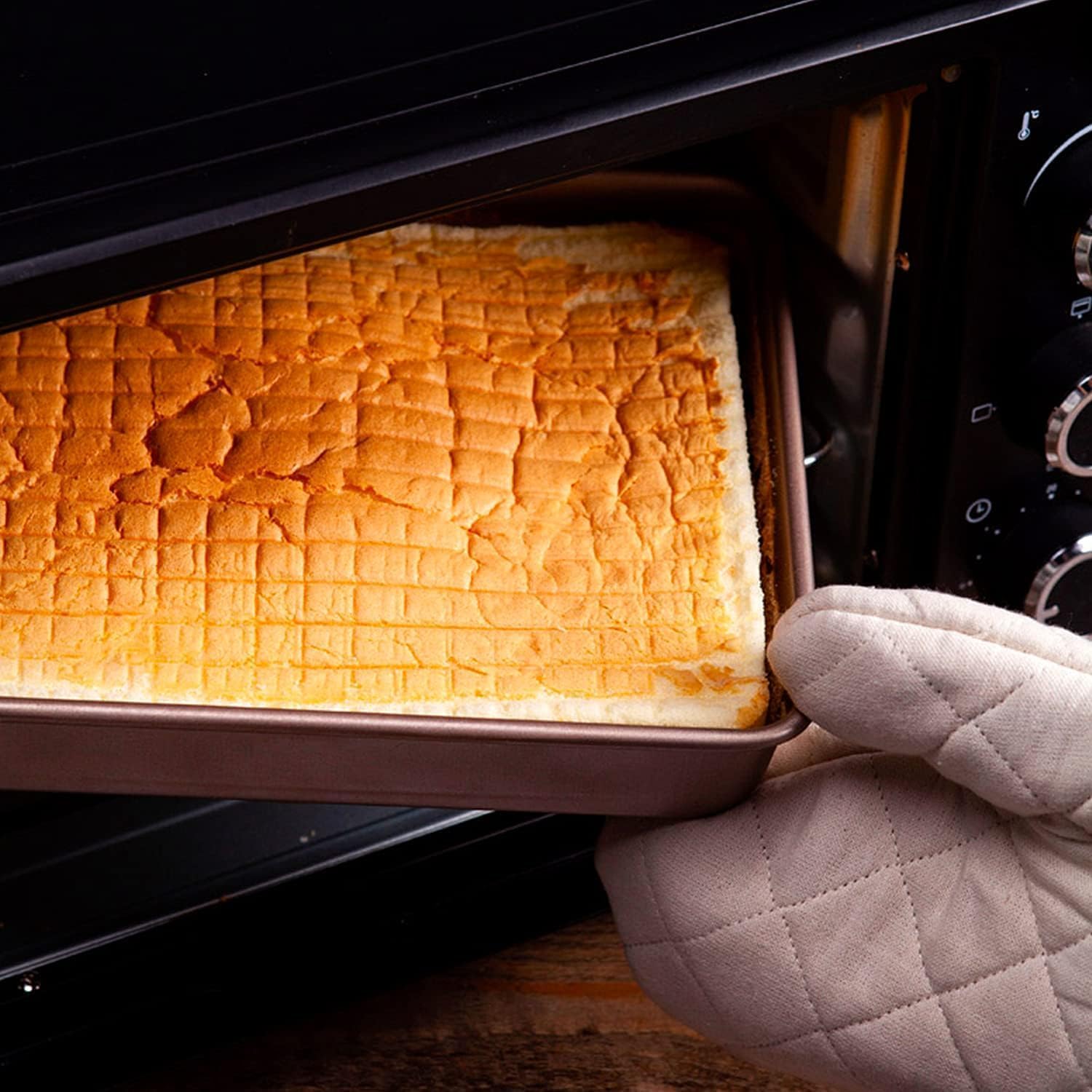 - Non-stick, Easy to Clean- The non-stick baking sheet has great mirror finish to reduce the risk of food sticking, easy to release the food while effectively reducing grease adsorption, makes it easy to clean up, just rinse the rectangle cake pan oven pan under water or run through the dishwasher