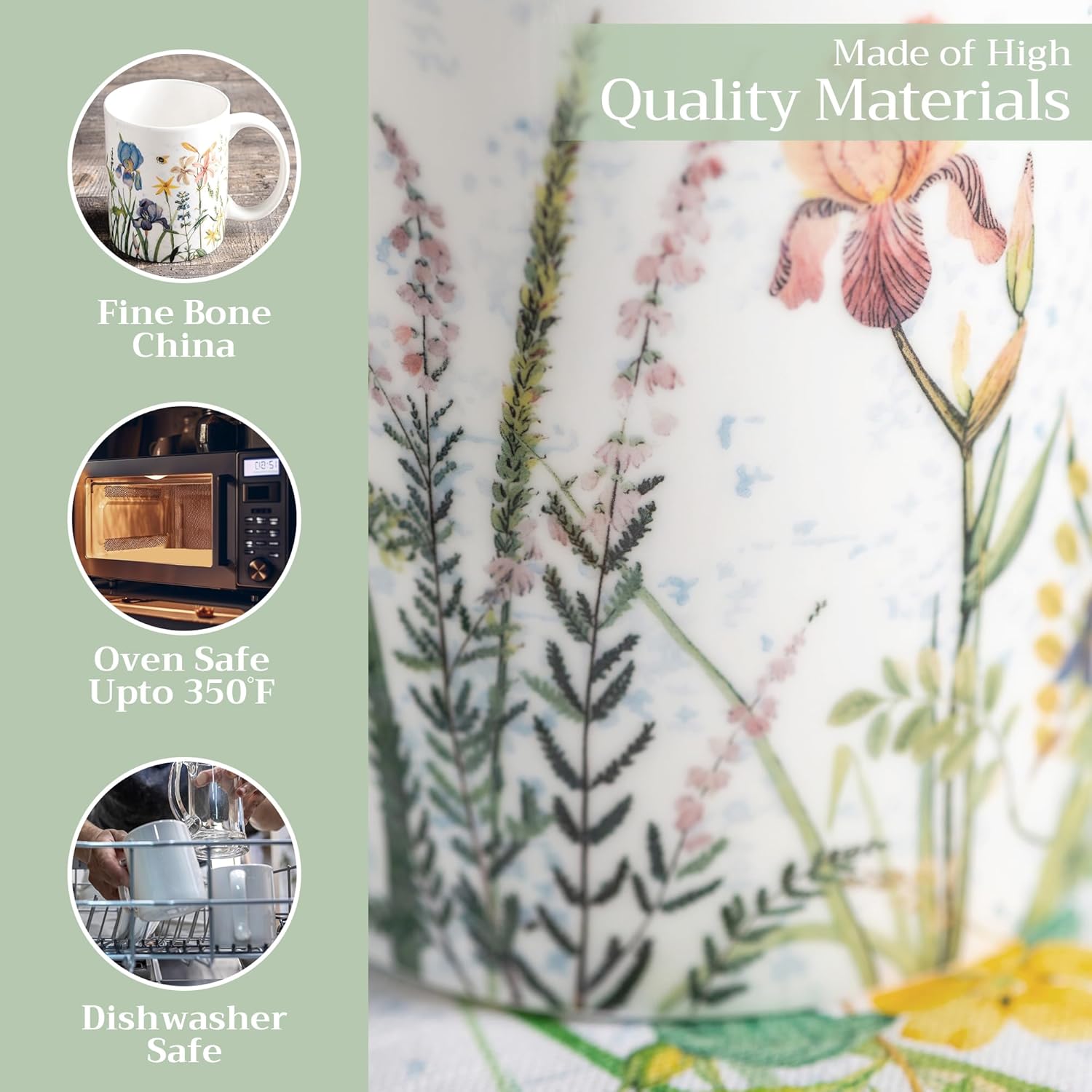 Maison d' Hermine Coffee Mug with Handles Fine Bone China Mugs Pack of One Tea Cups for Hot Beverages Cappuccino Latte Home Restaurant Office Perfect for Gift (Fleurs De Mai - Prairie, 12 Ounce)