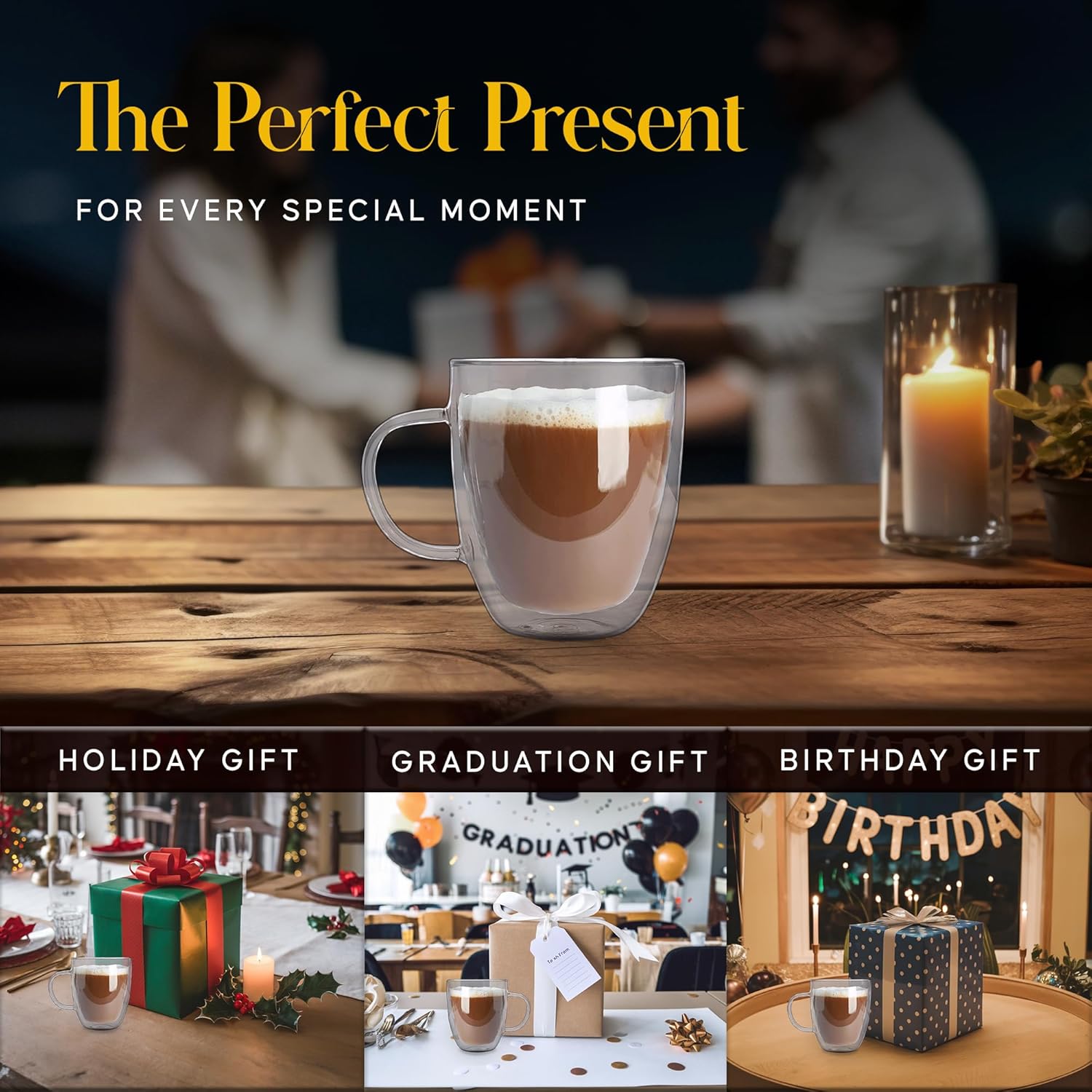 - Thoughtful Gift For Any Occasion - Enjoying your versatile tea and cappuccino mug? Share the joy with others! Functional and stylish, Kitchables’ double walled glass coffee mugs are practical, memorable gifts for your loved ones. Kitchables 20oz clear glass coffee mugs keep your favorite beverages warm or cold for longer.