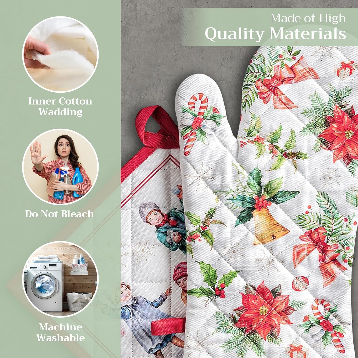 - Premium Quality: Crafted from quilted 100% cotton, this heat resistant oven mitt and pot holder set offers comfort, flexibility, and protection from hot cookware. Ideal cotton oven mitts for daily kitchen use and cooking safety