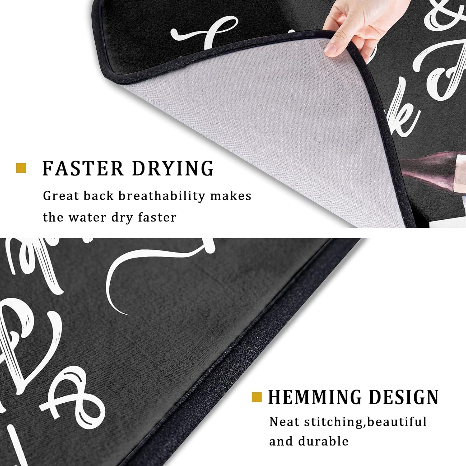 - ❀ 【SPECS & WATERPROOF BACKING】 Made of absorbent fabric, this 3-ply polyester provides a soft cushion. 24" X18", fitting most counters snugly while providing a smart and sharp look, a gorgeous decoration for kitchen. Moreover, the waterproof backing stops liquids from soaking through, damaging or staining the surface below and allows moisture to evaporate quickly at the same time.