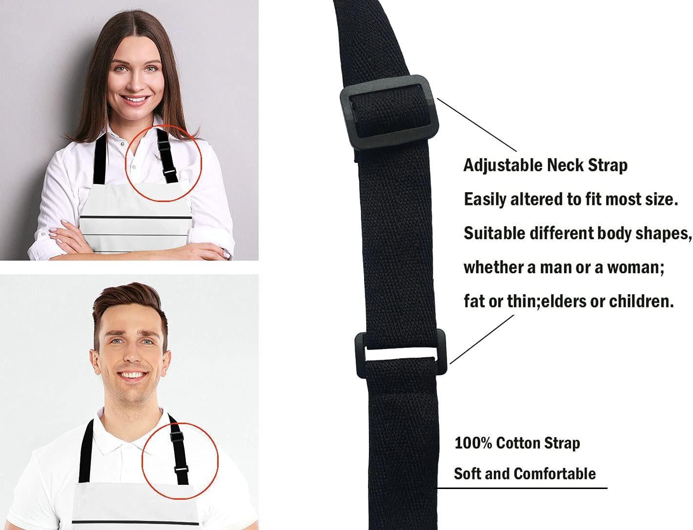 - Adjustable neck strap with black ties,The adjustable Neck strap design, It can be adjusted quickly for people of different heights, making it easier to wear.