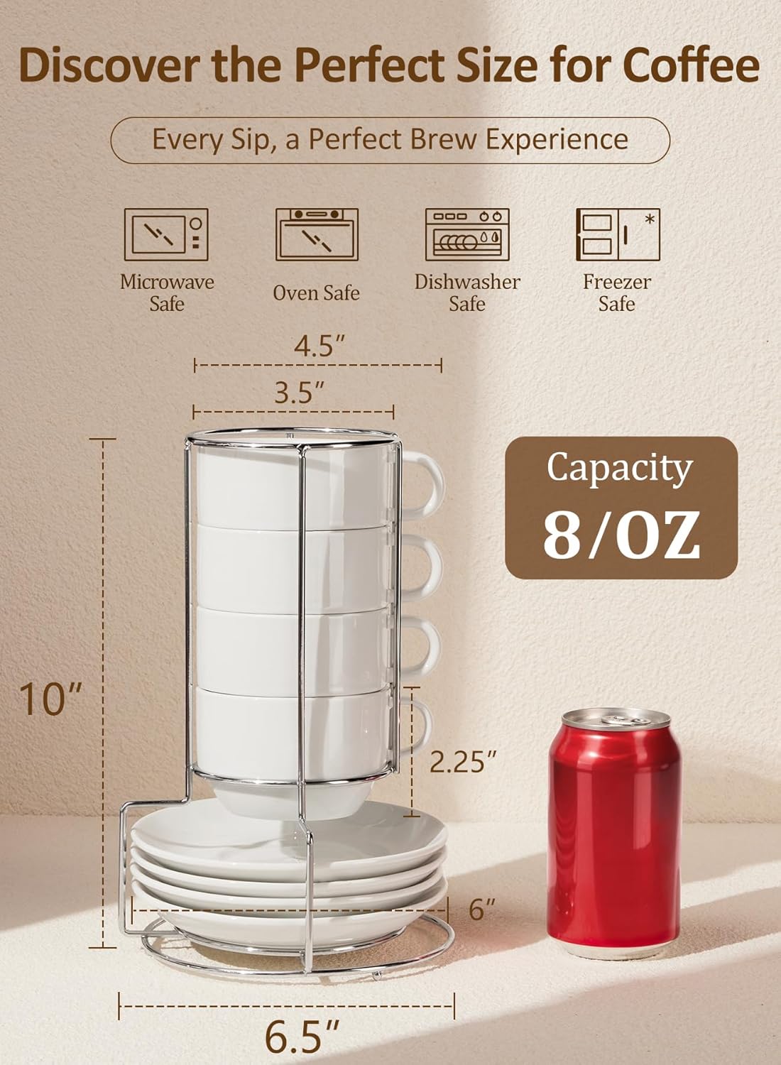 - Well Designed: Yedio classic coffee cup with saucer and metal stand enhances the level of your daily coffee time. All cups and saucers can be stacked on the stand, which can help save storage space