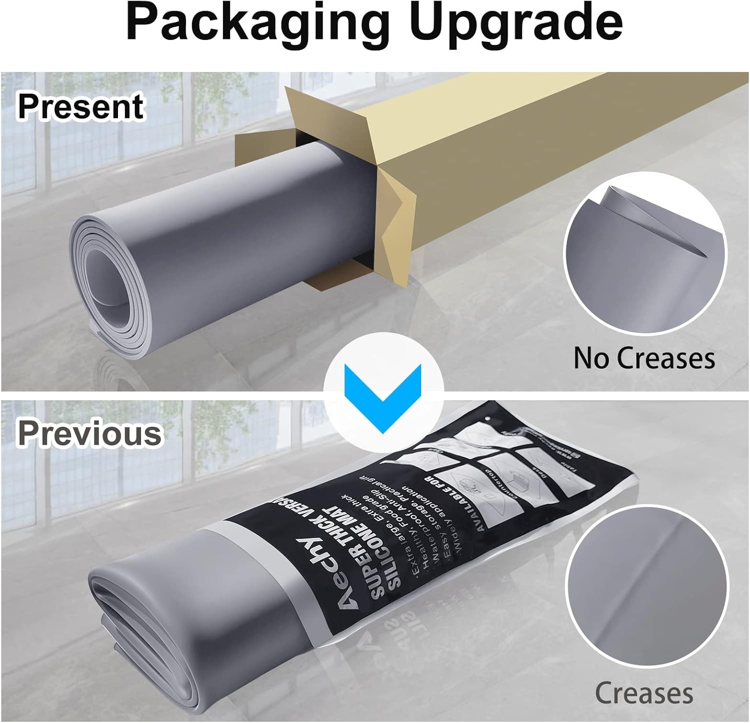 - 【ROLL UP AND SHIP 】: AECHY silicone kitchen counter mat packaging is upgraded from folding to rolling, in order to provide customers with a better experience. You will no longer suffer from mat crease. The 35.3"x23.5"x0.08" extra large silicone mat is big enough to meet your needs about protecting all size countertop. One dollar coin thickness, up to twice as thick as regular silicone craft mat. The mat lay flat without any wrinkle, stronger and more durable.