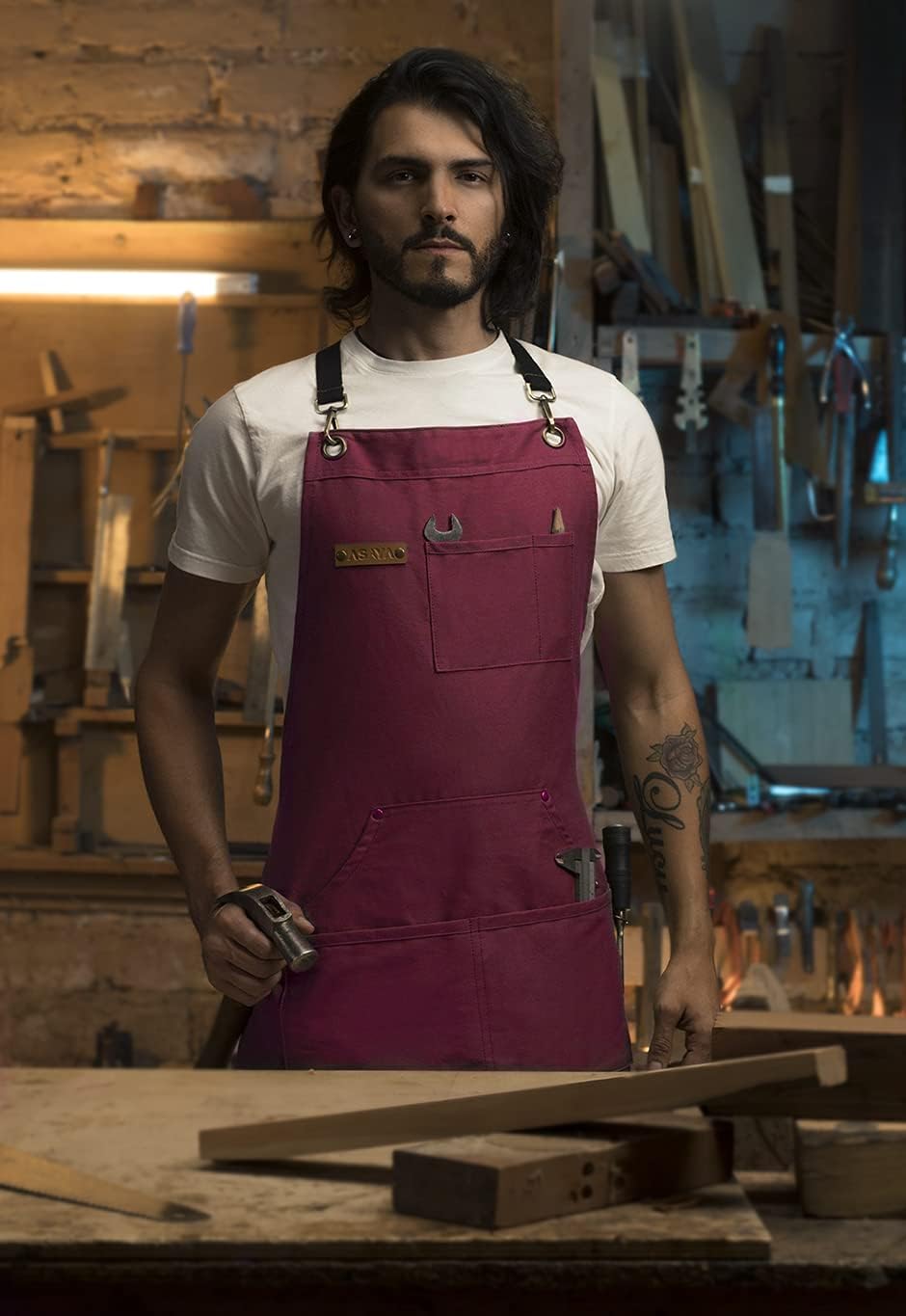 - EXPERT CRAFTSMANSHIP - Asaya Chef, BBQ and Work Aprons are designed from high quality materials and built to last through years of wear and tear in the kitchen or workshop They are hand crafted with double stitched 10oz cotton canvas, stainless steel or brass hardware and leather accents.