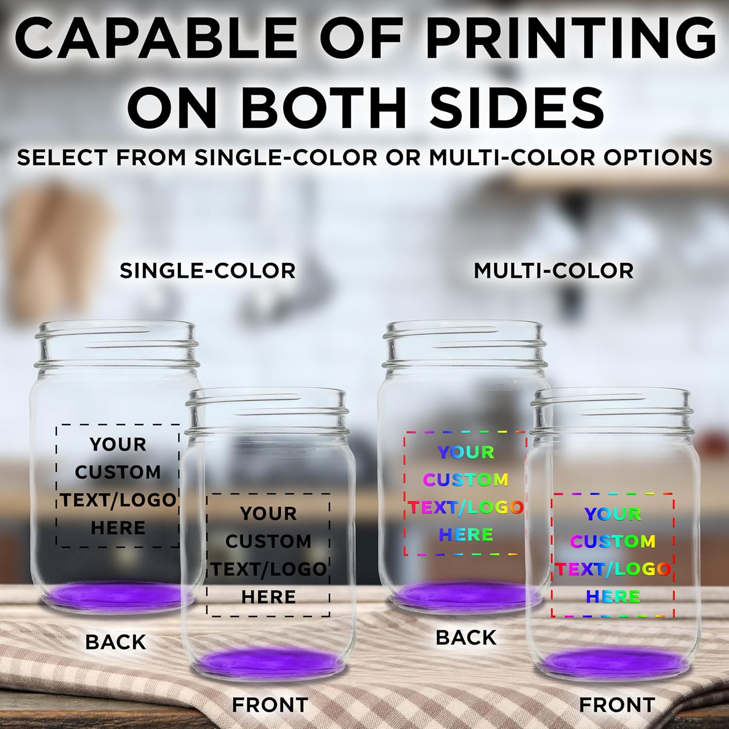 DISCOUNT PROMOS Custom Decorating Mason Jars 12 oz. Set of 100, Personalized Bulk Pack - Glass Jars for Overnight Oats, Candies, Fruits, Pickles, Spices, Beverages - Purple
