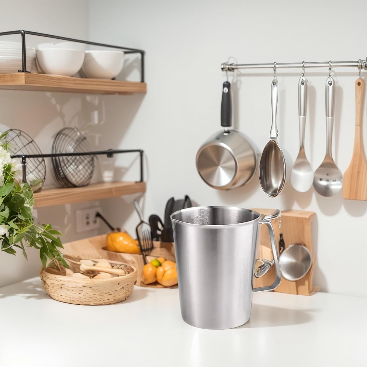 Stainless Measuring Cup (2000ML), KSENDALO 8 Cup Stainless Measuring Cup, Stainless Pitcher with Marking with Handle, 64 Ounces (2.0 Liter)