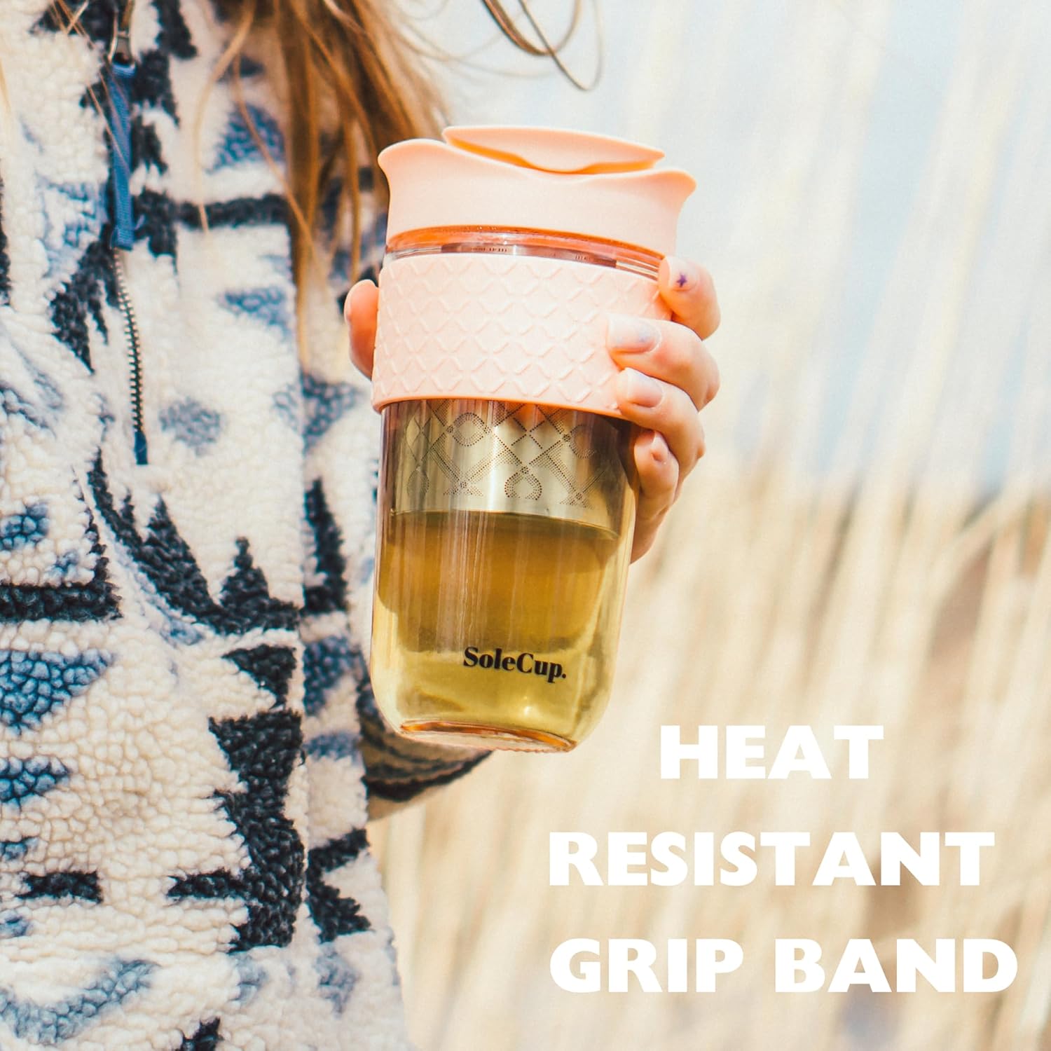 Large Travel Mug Loose Tea Infuser - Detachable Tea Strainer with Spill Proof Lid - 18oz/530ml BPA-Free Reusable Glass Travel Coffee Cup with Silicone Band (Pink) (Pink)