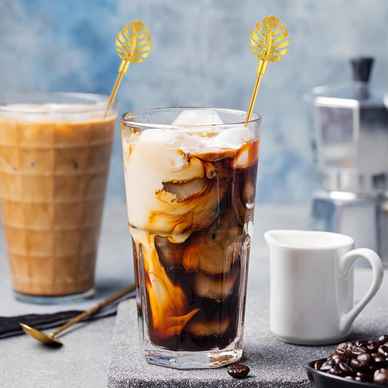 Stainless Steel Coffee Beverage Stirrers Stir Cocktail Drink Swizzle Stick with Palm leaf Metal Top,4PCS GOLD stirrer