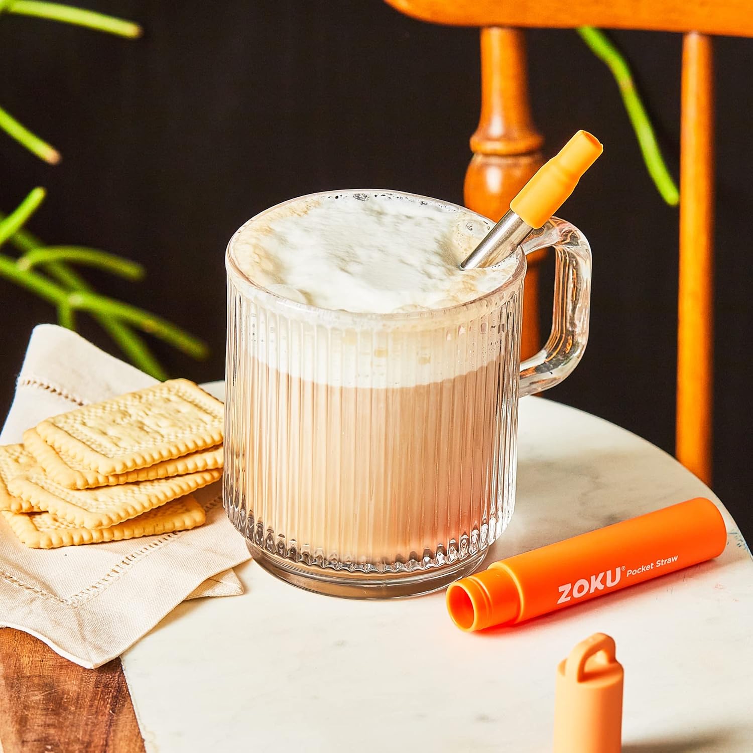 ZOKU Reusable Metal Straw with Case for Travel, Orange - Collapsible Stainless Steel Drinking Straw with Silicone Tip and Cleaner Brush, Ideal for Key Chains, Pockets, Purses
