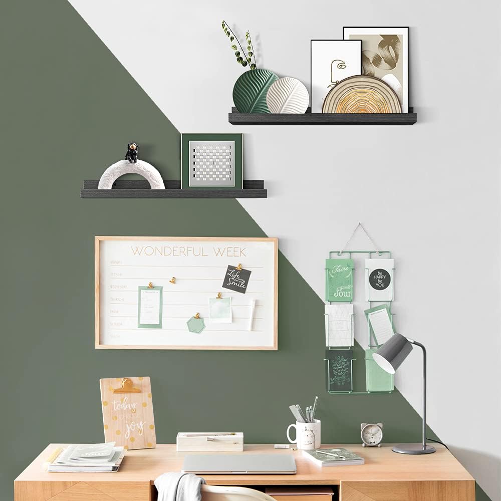 - ăPerfect solution for your wallsăThe picture ledge shelf is SAME SIZE as each other (L 23.1" x D 4.5" x H 2.2") and is such an easy way to display photos without making lots of holes in your walls. The wall shelves are crafted from Paulownia wood which are lightweight yet proportionately strong, sustainable real wood. They come fully assembled and all mounting hardware is included in the package.