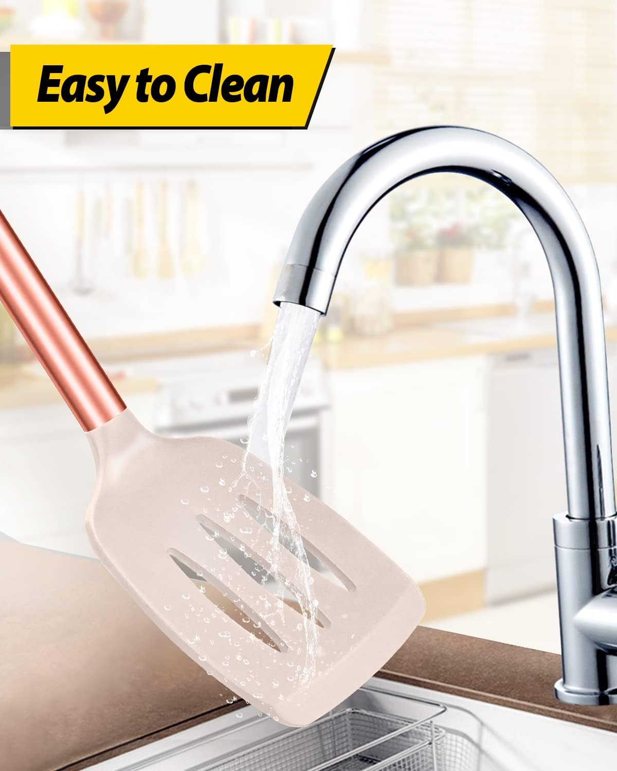 Pack of 2 Silicone Solid Turner, Non Stick Slotted Kitchen Spatulas, High Heat Resistant BPA Free Cooking Utensils, Ideal Cookware for Fish, Eggs, Pancakes(Rose Gold Khaki)
