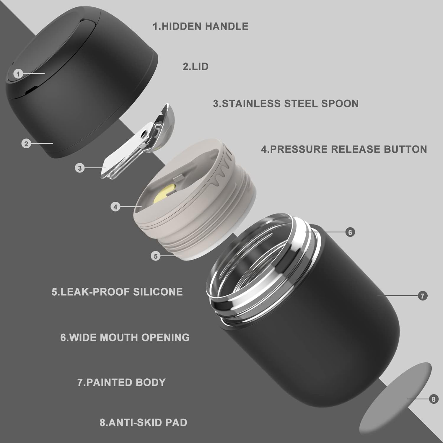 - Joopetalk thermo for hot food has an air pressure release button to help you easily open the bottle, and lunch thermo food jar is completely sealed, can prevent spilling accidents(100% Leak-Proof)