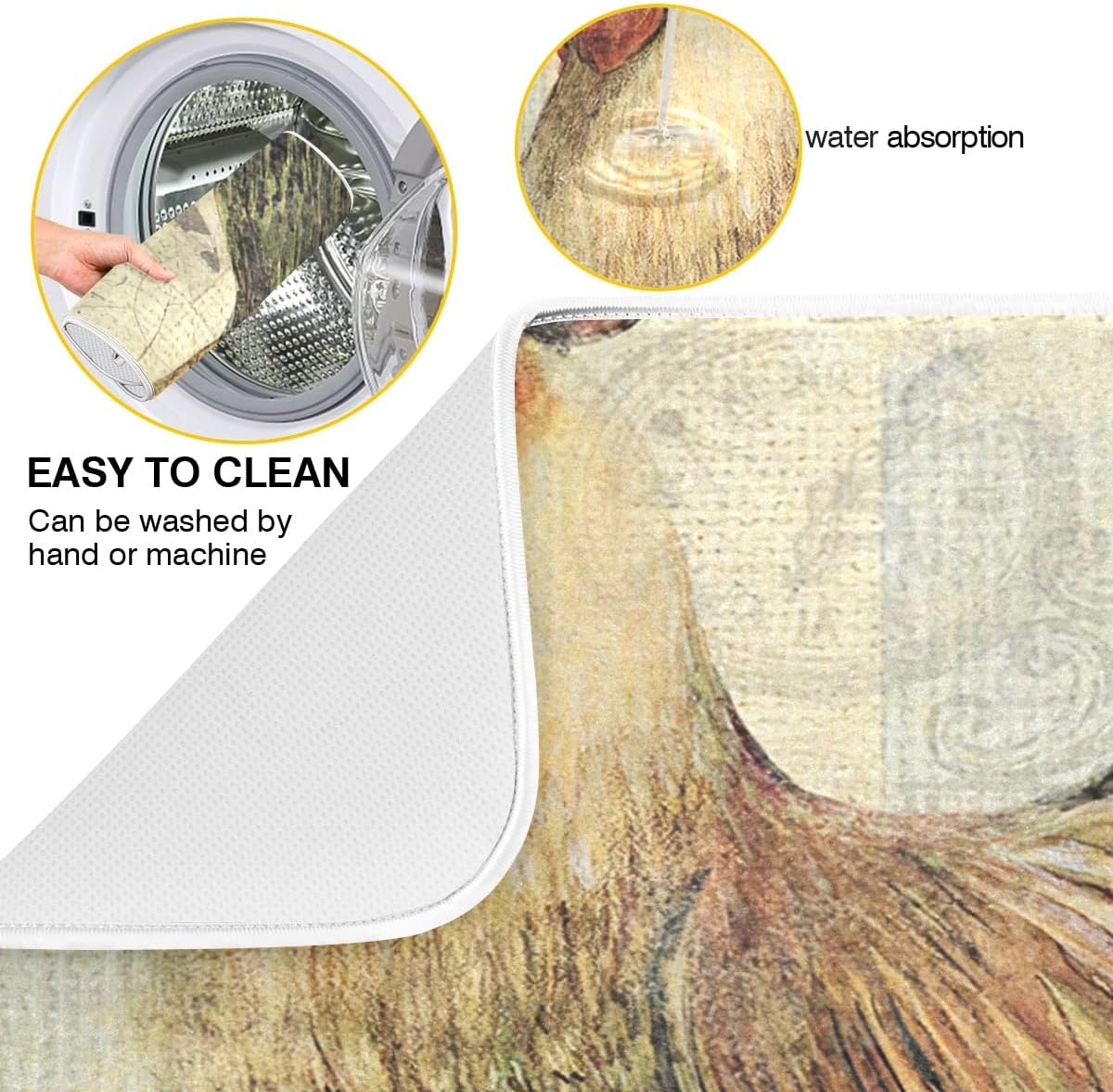 Farmhouse Rooster Dish Drying Mat 18 x 24 Inch with Hanging Loop High Absorbent Reversible Microfiber Dish Drying Pad Dish Rack Pad Drainer Mat for Kitchen Counter Coffee Bar