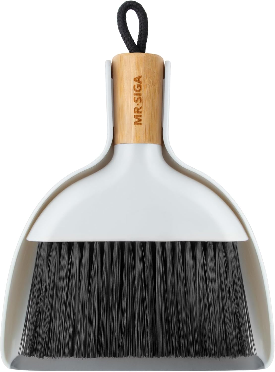 - MR.SIGA mini handheld dustpan and brush set has a natural bamboo handle, which is more environmentally friendly and comfortable to hold. Measures 7.1 " x 6.2 "