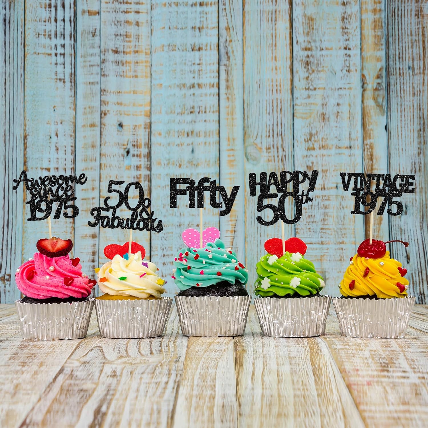 - ♡Premium Material: These glitter Vintage 50th Birthday Cupcake Toppers are made of high quality paper and food-grade toothpick, very safe to put them on cakes, cupcakes, ice cream, fruits, pie, dessert, cheese or any dish and food appetizer you want to decorate.