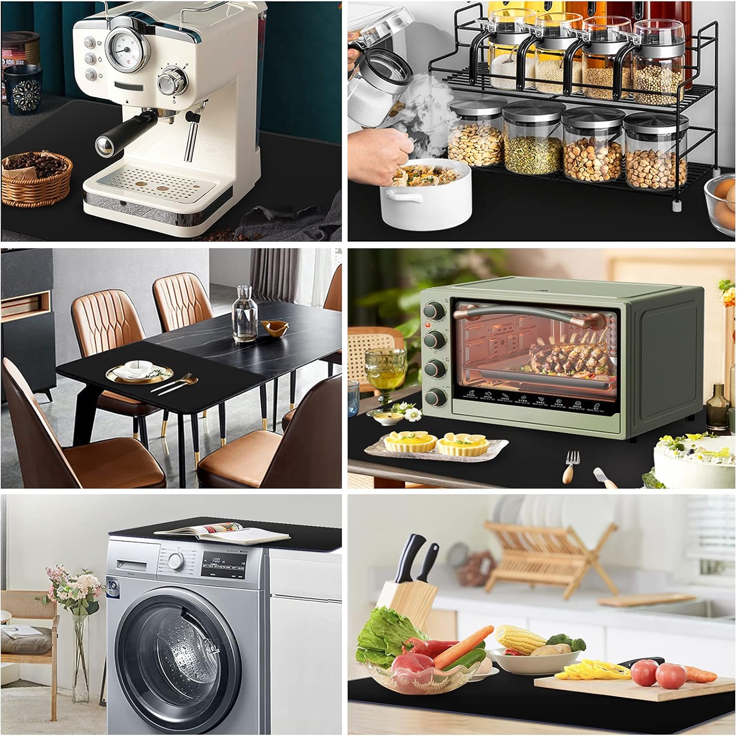 - You Canāt Go Wrong with It: This placemat can solve multiple problems. Great for catching messes. Protect counters from spills, scratches, grease, coffee stains, or damage. Place hot items of all sizes directly on the mat without having to dig through the drawer for a hot pad and no more need for trivets. Reduce the noises made by appliances. No need to worry about items slipping off the countertop. Tools will keep in place. Even if you are rolling dough hard on it, the mat won't slide