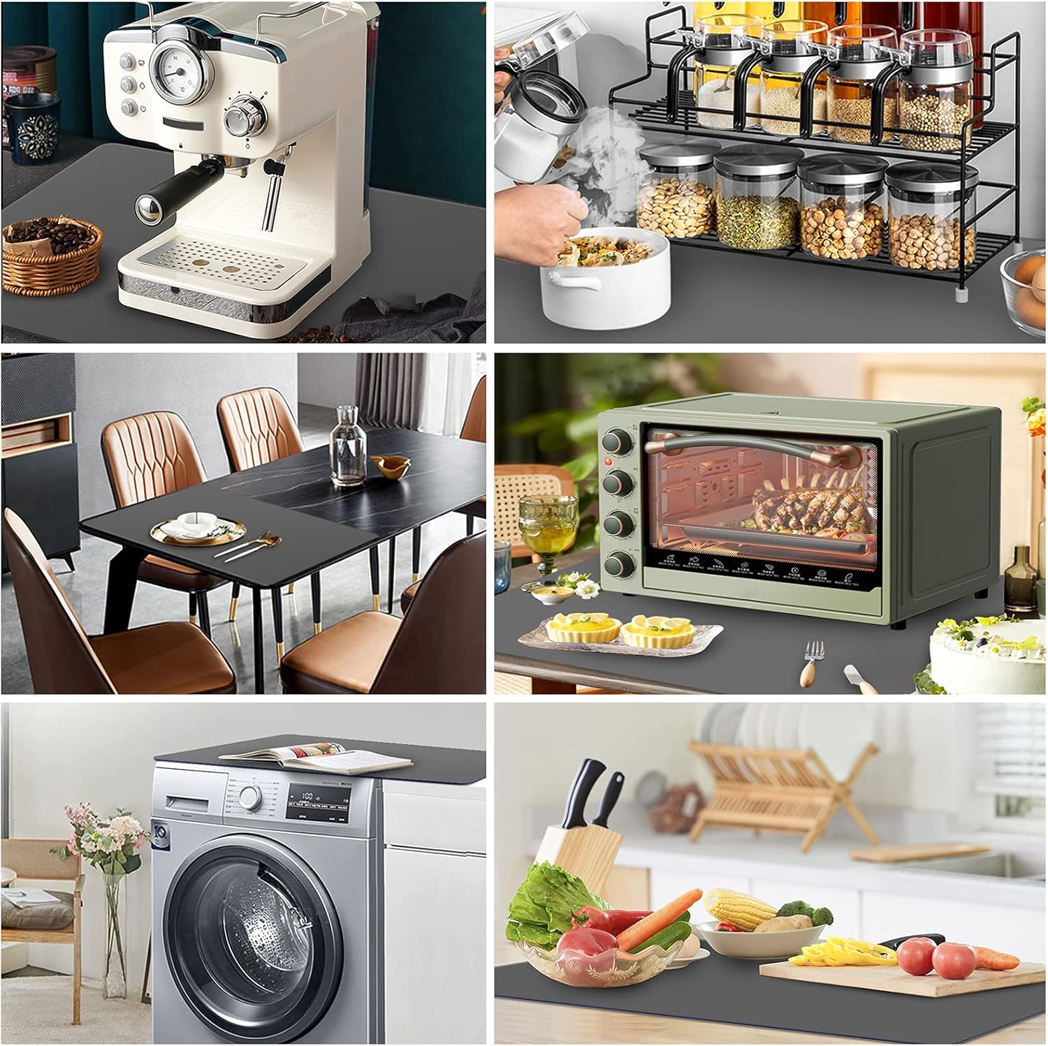 - You Canāt Go Wrong with It: This placemat can solve multiple problems. Great for catching messes. Protect counters from spills, scratches, grease, coffee stains, or damage. Place hot items of all sizes directly on the mat without having to dig through the drawer for a hot pad and no more need for trivets. Reduce the noises made by appliances. No need to worry about items slipping off the countertop. Tools will keep in place. Even if you are rolling dough hard on it, the mat won't slide