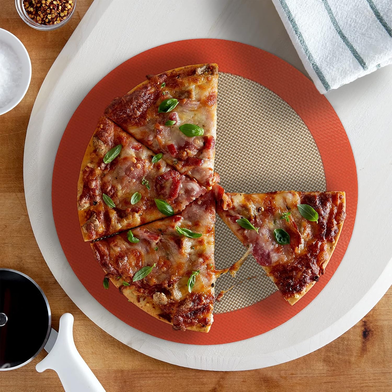 - 【HEALTHY, CONVENIENT AND COST-EFECTIVE】Go diet and keep fitness? From less oil intake? Baking with these cooks’ essentials round silicone mats, you won’t need oils, parchment paper, cooking sprays, or aluminum foils any more on your cookie sheet or baking pan. And you will no longer worry about stickiness on the baking pans or sheets. Use the silicon baking slip mats for any cake recipe that calls for parchment paper.
