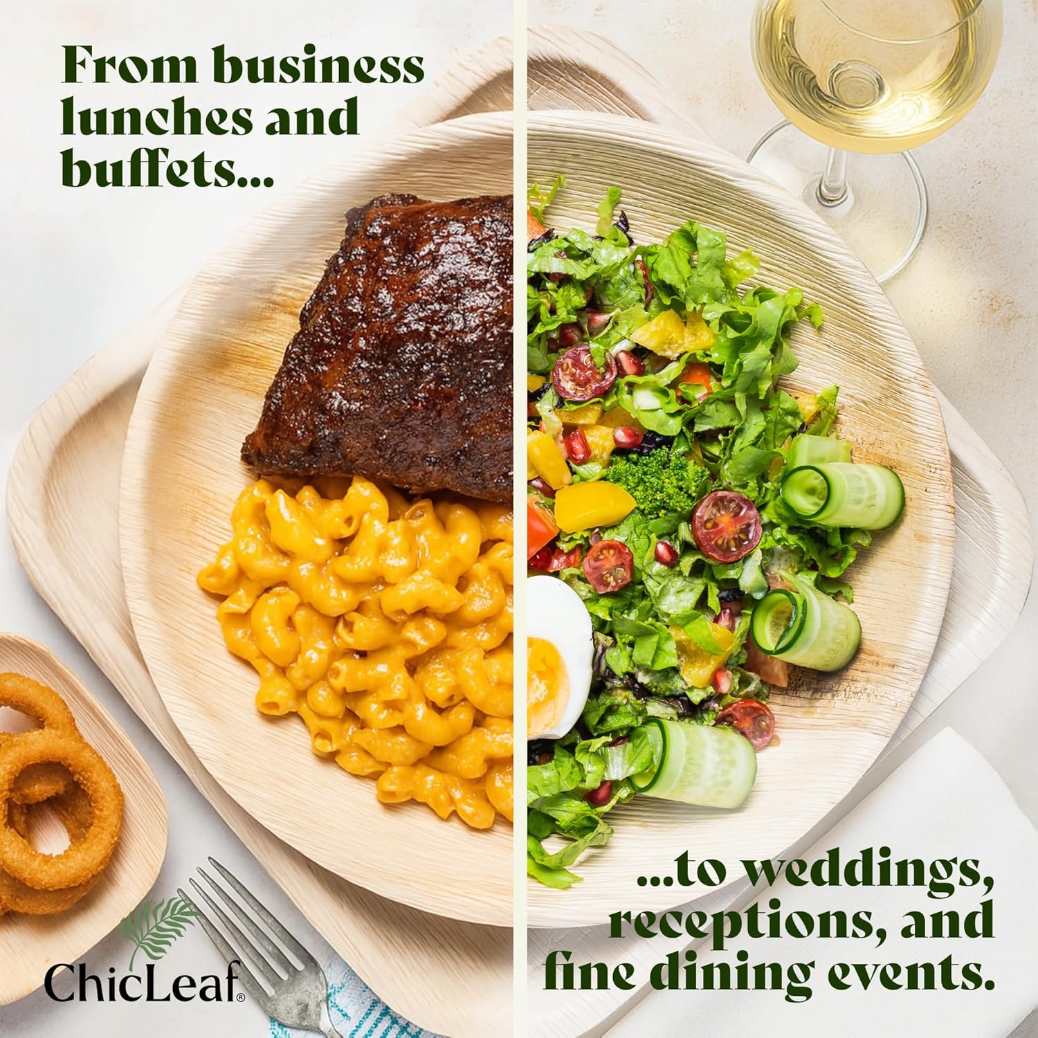 - Rustic Elegance: Elevate your table setting with the unique design of these palm leaf plates, creating a memorable backdrop for your meals. Impress guests with these fancy disposable plates that add a touch of sophistication to any gathering