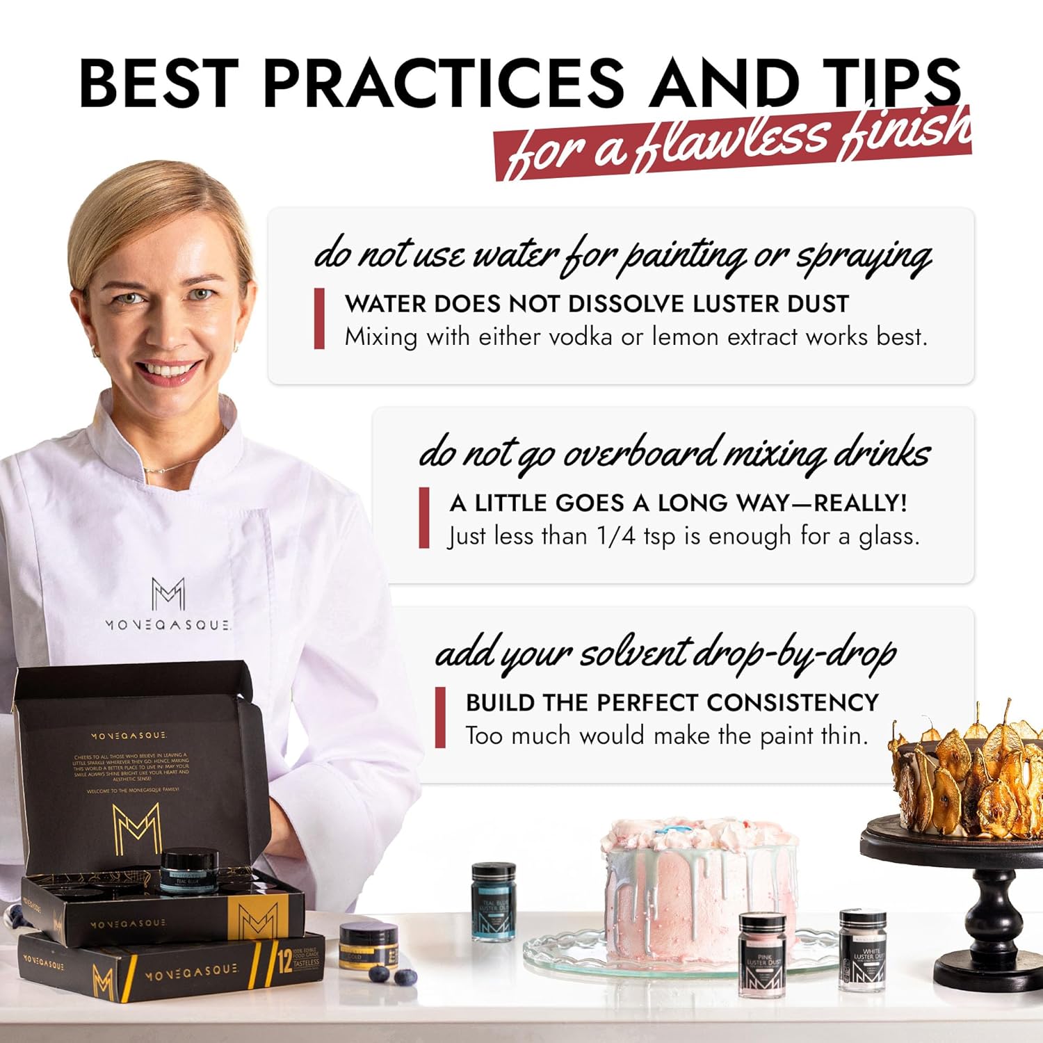 - MULTIPLE COLORS AVAILABLE: Available in 12 vibrant colors, including gold, pink, silver, and more. Our edible luster dust is perfect for themed parties, holidays, halloween, and special occasions. Mix and match to create stunning, eye-catching decorations for any event.